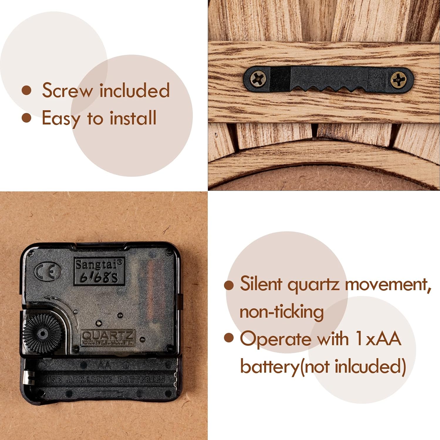 • Solid Wood Decorative Clocks: Made of solid wood with excellent handmade workmanship, this wall clocks battery operated features beautiful wood texture and rustic style, without any cheap plastic exterior or paint