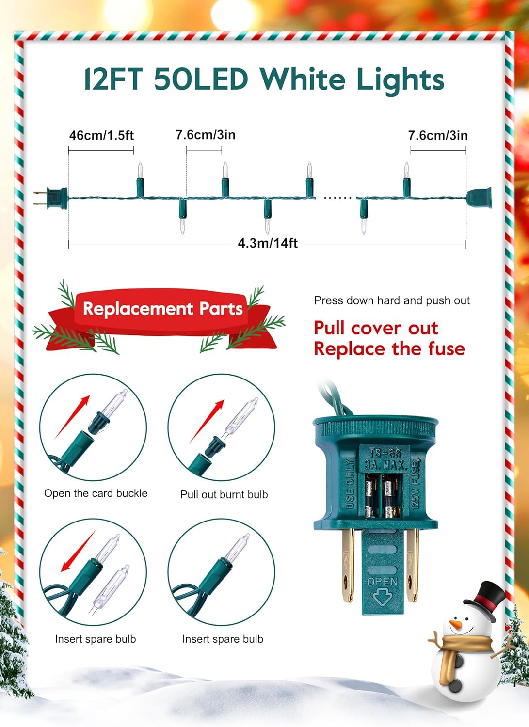 • Creative Mini Christmas Lights Set: Brightown Christmas light component of Christmas-green wire and 50 counts of transparent fairy incandescent mini lights, the total length of the string light is 13 feet, and each bulb is 3 inches apart. You can connect our indoor string light end-to-end to up to 10 creative light strings for meeting any decoration needs