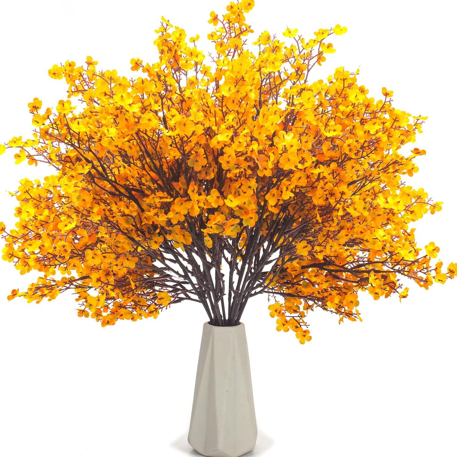 10Pcs Artificial Babys Breath Flowers, Orange Fall Flowers, Fake Silk Flowers for Home DIY Floral Arrangement Table Centerpiece Fall Thanksgiving Autumn Decoration