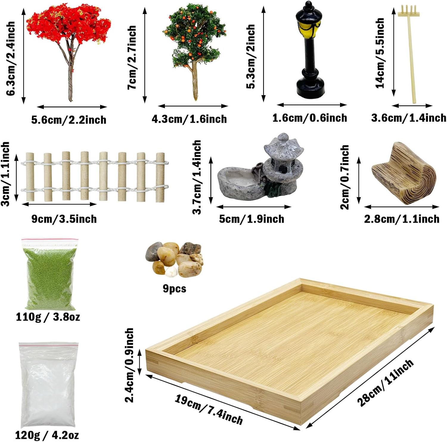 • Mini Zen Garden Kit: The set includes 26 PCS yard miniatures and 1 PCS 28 x 19 x 2.4cm/ 11 x 7.4 x 1.9 inch bamboo tray. Use this mini tabletop sand Zen garden! Wish you enjoy your garden time.