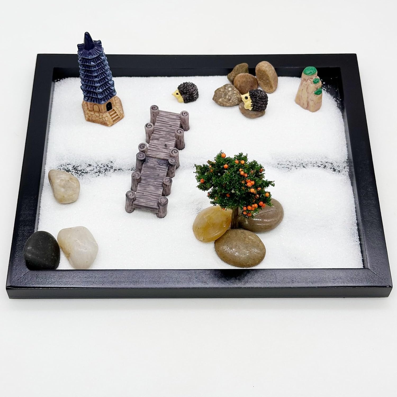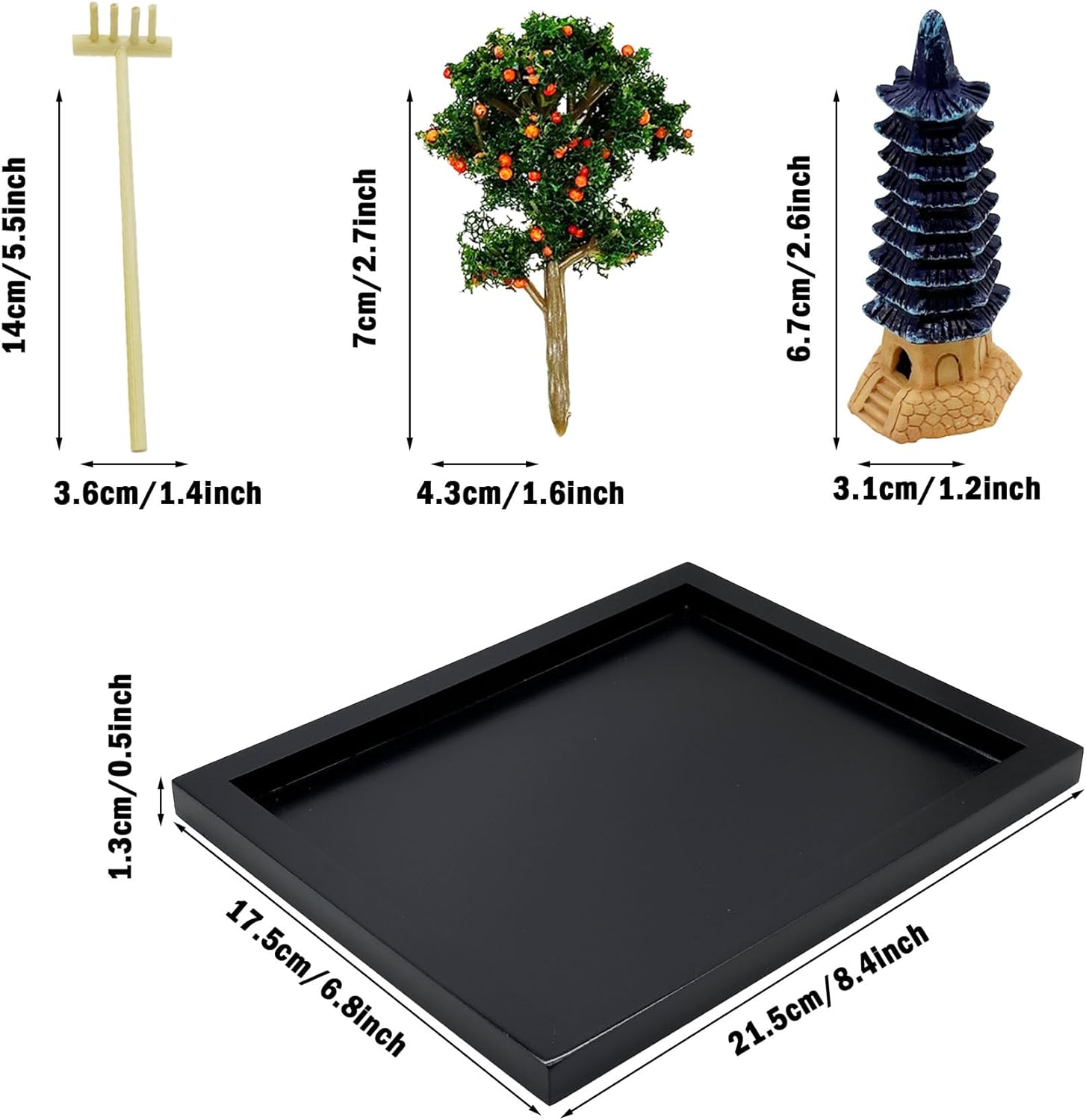 • Mini Zen Garden Kit: The set includes 22 PCS yard miniatures and 1 PCS 21.5 x 17.5 x 1.3cm/ 8.4 x 6.8 x 0.5 inch bamboo tray. Use this mini tabletop sand Zen garden! Wish you enjoy your garden time.