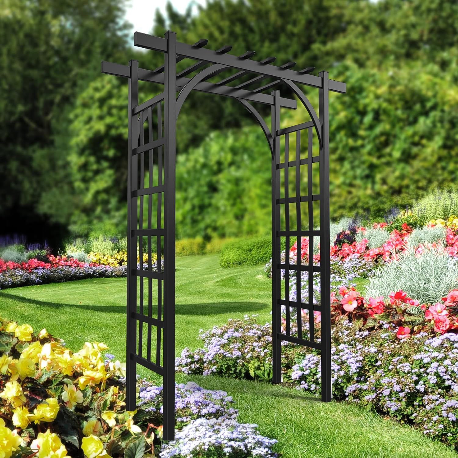 VINGLI Garden Arbor, PVC Wedding Arch for Ceremony Party, Garden Trellis for Climbing Plants Outdoor, Arch Backdrop Stand for Garden, Backyard, Wedding, Lawn (Black)