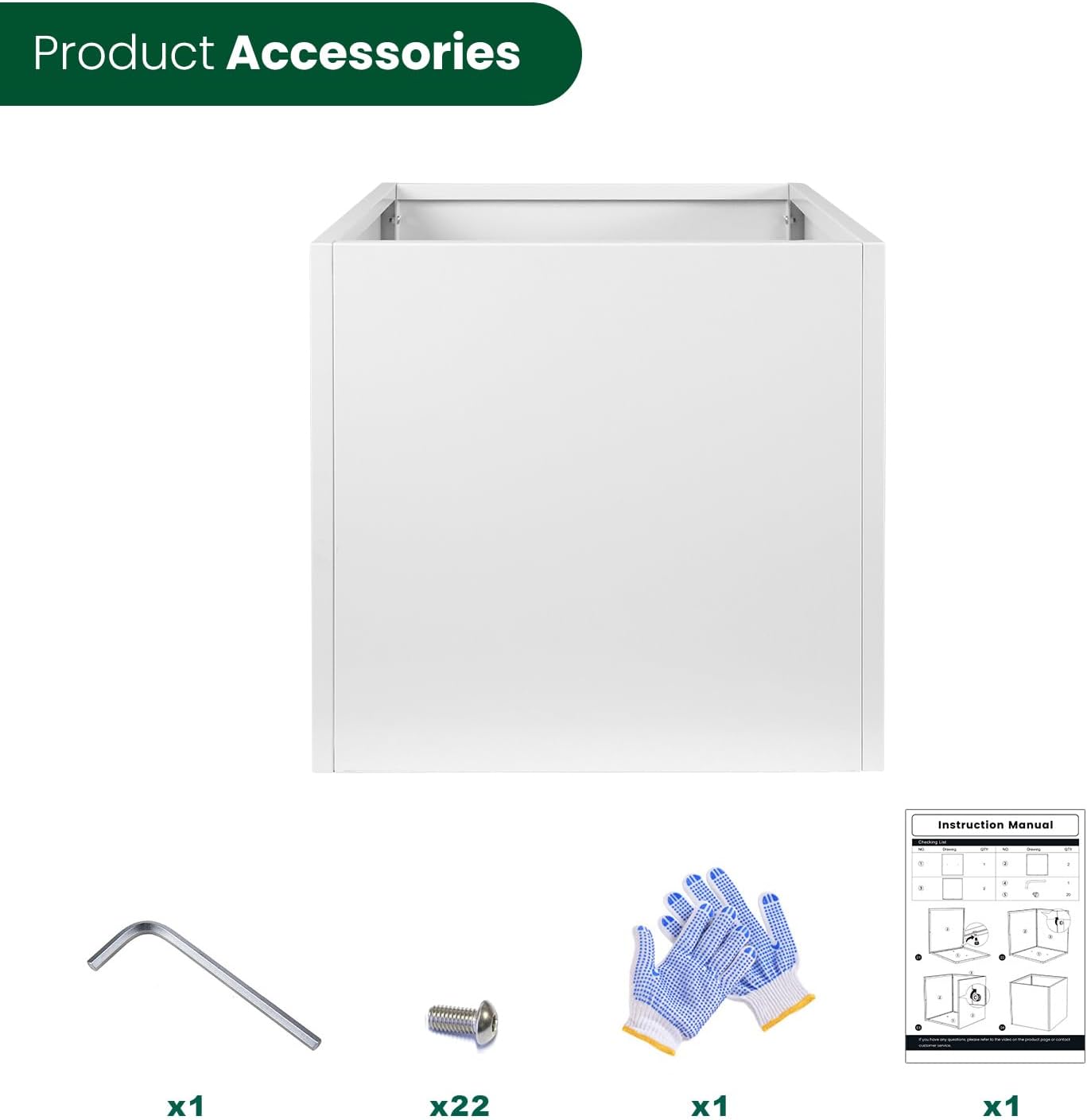• [ Galvanized Steel Planter] 32" L x 32" W x 32" H. Heavy Duty Galvanized Steel Planter. Easy to Install. Package: 4 sides and a bottom surface with 2 drainage holes, Installation Manual x 1, M5 Allen wrench x 1, screw x 22, gloves x 1.