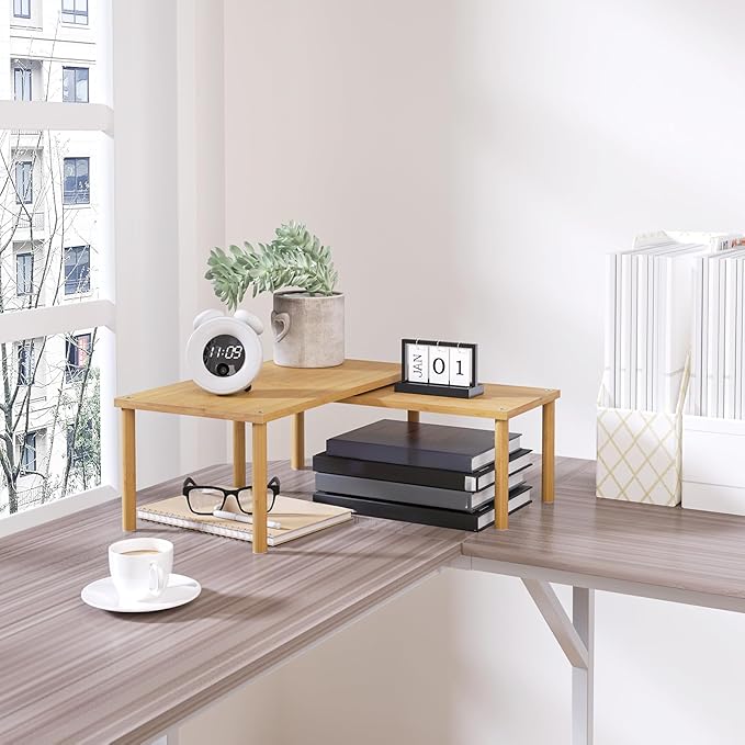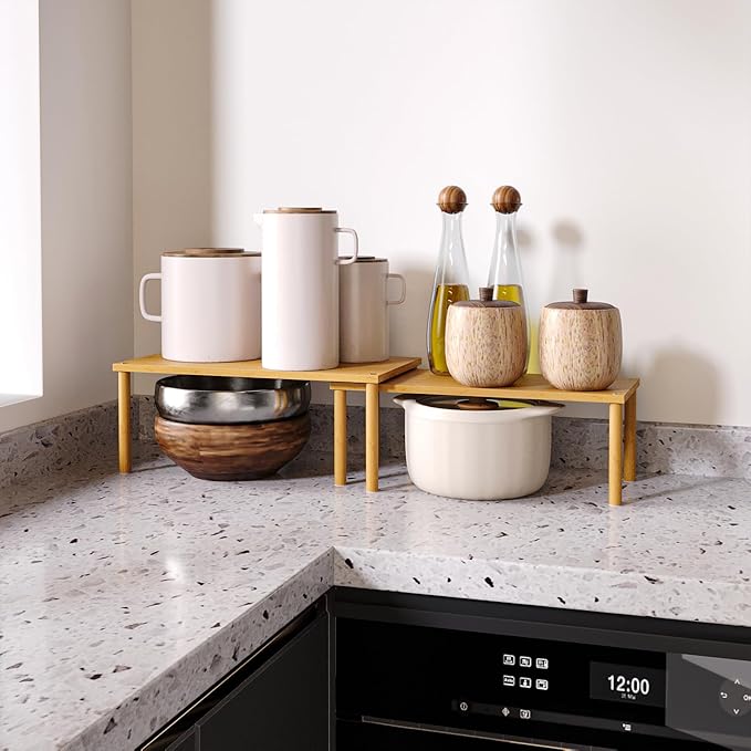Cabinet Organizer Shelf(Set of 2),Kitchen Counter Shelves,Bamboo Stackable Expandable Spice Rack Countertop(Large)