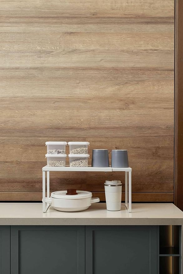 • FUNCTIONAL STORAGE: This cabinet shelf can be used in various scenes of your home including cabinets, pantry, cupboards, kitchens, studio, bathrooms, bedrooms, under sink and any counter surfaces. You may use the shelf as a storage organizer for plates, cups, dishes, pots, bowls, snacks, books, magazines and whatsoever.