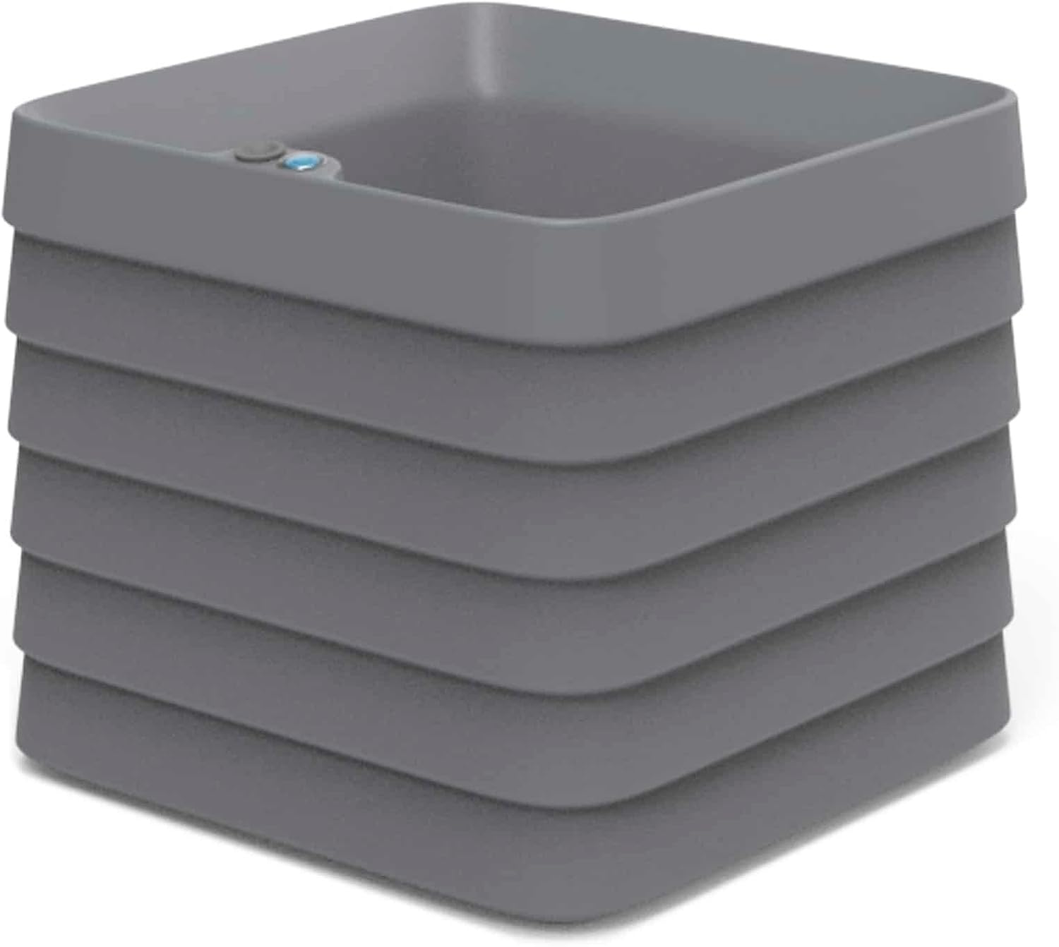 Crescent Garden TruDrop Self Watering Slat Square Box Planter - Indoor Outdoor Planter Box with Built-in Reservoir & Water Level Indicator, All Weather Flower Pot, 22'' (Slate Gray)