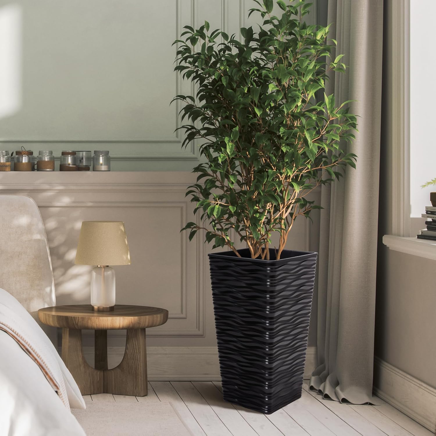 • Stylish Design: These 22" H. black square tapered planters feature a modern wavy finish for an elegant decorative touch