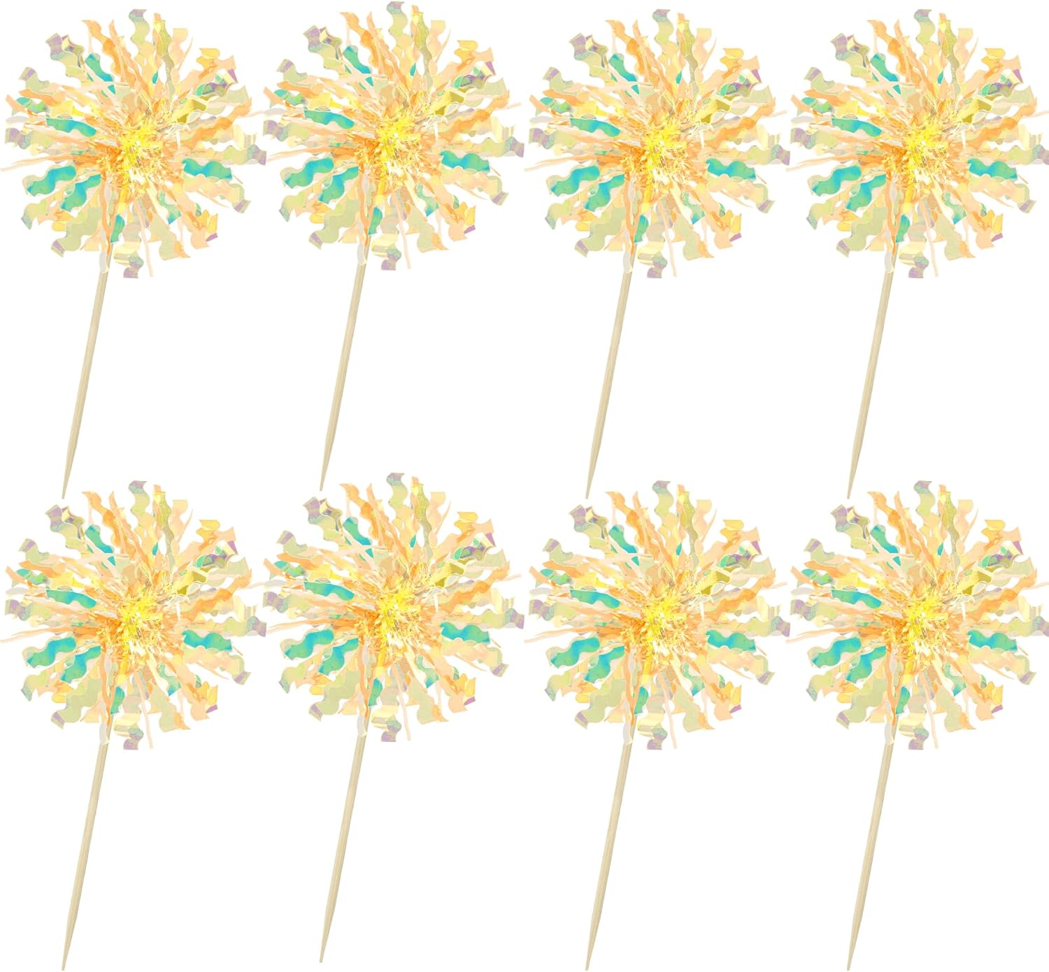 Ephlyn 30Pcs Foil Firework Cupcake Toppers Sparkle Tinsel Drink Birthday Cake Decorations Cocktail Food Fruit Toothpick for New Years Wedding Birthday Party Decorations Yellow