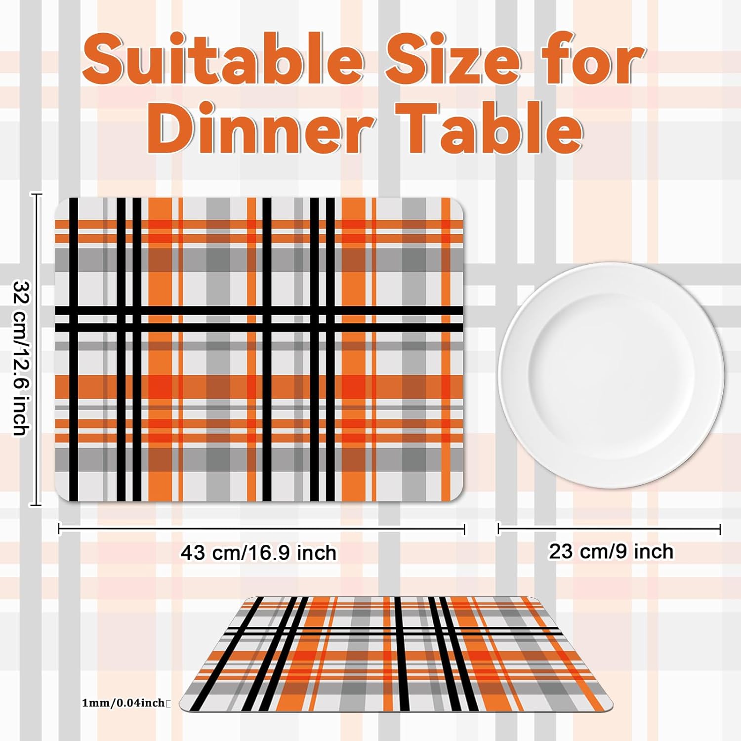 • Suitable for various occasions:Whether you're hosting a formal dinner, a casual get-together, or a festive celebration, these orange autumn placemats are essential.Orange black buffalo plaid Thanksgiving table mats adaptable design and neutral color palette complement a variety of table settings, making them perfect for a wide range of occasions and themes.