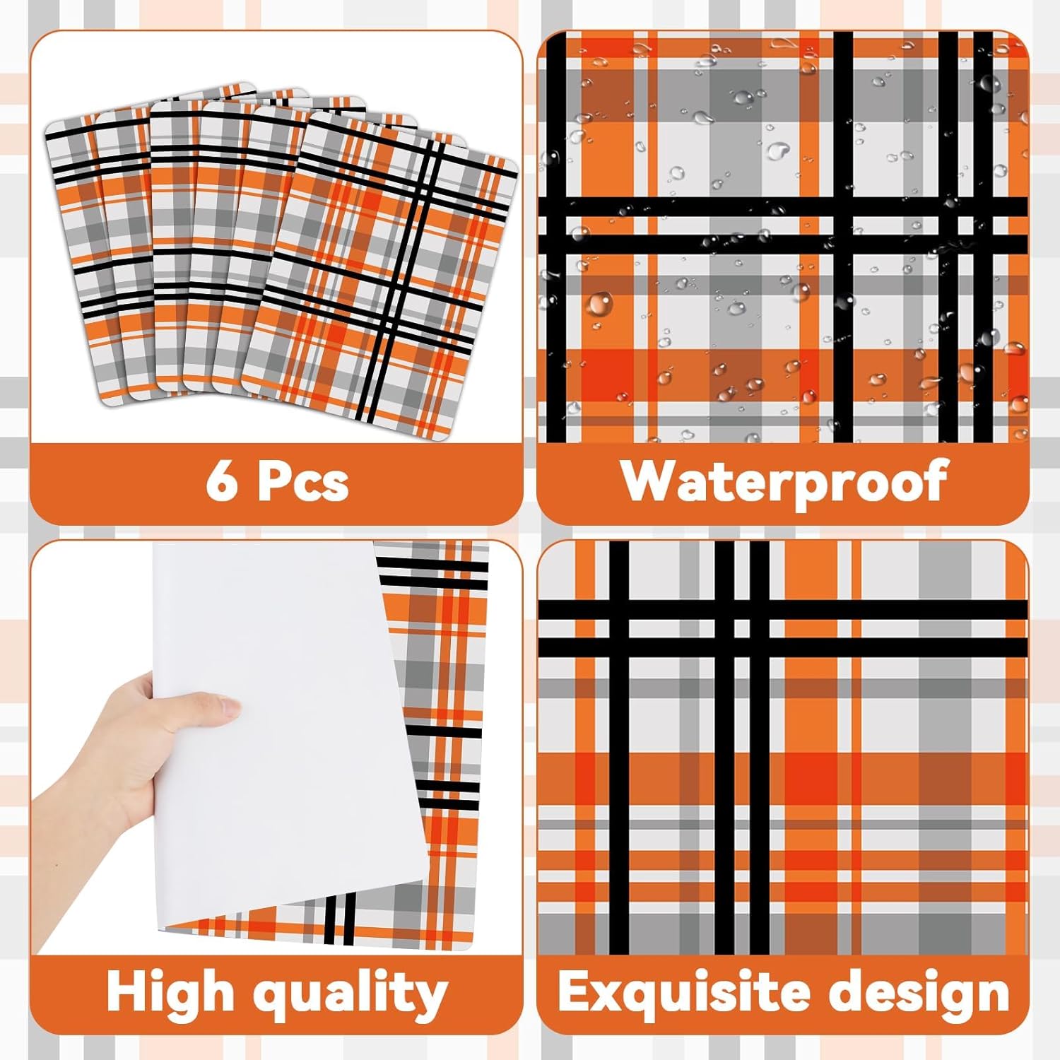 • Package includes:This set includes 6 pieces halloween orange black buffalo plaid placemats, offering a generous quantity to easily accommodate your family and guests.Orange black placemats provide ample coverage for your dining table; keeps your tableware stay protected from spills and stains, allowing you to focus on creating cherished memories with your loved ones.