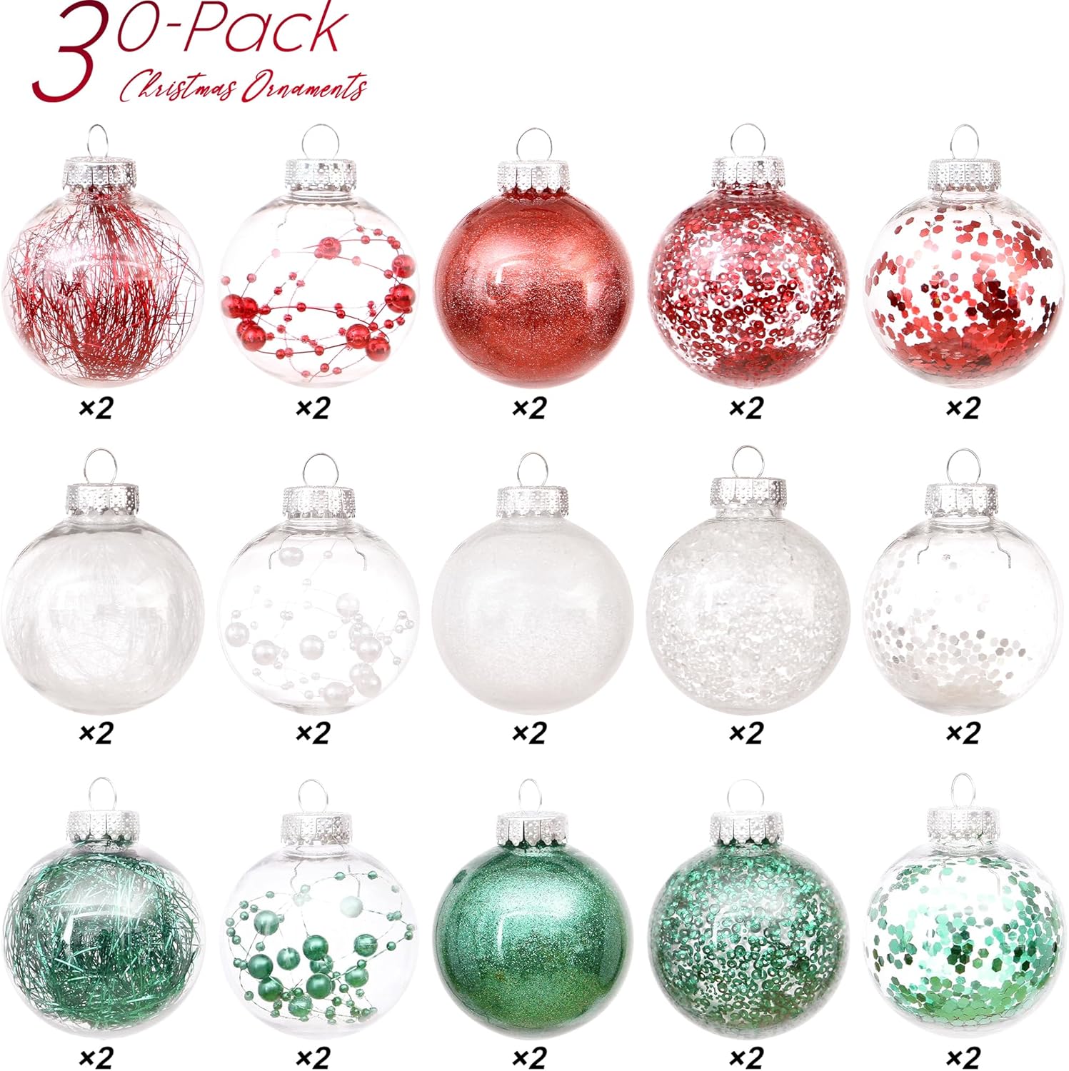 • FIT OUR DECORATIONS & MOST CHRISTMAS TREES - The ball ornament set comes with 60mm/2.36 inch 30-Pack ball ornaments. They are the most common size options and fit our decorations and most Christmas trees