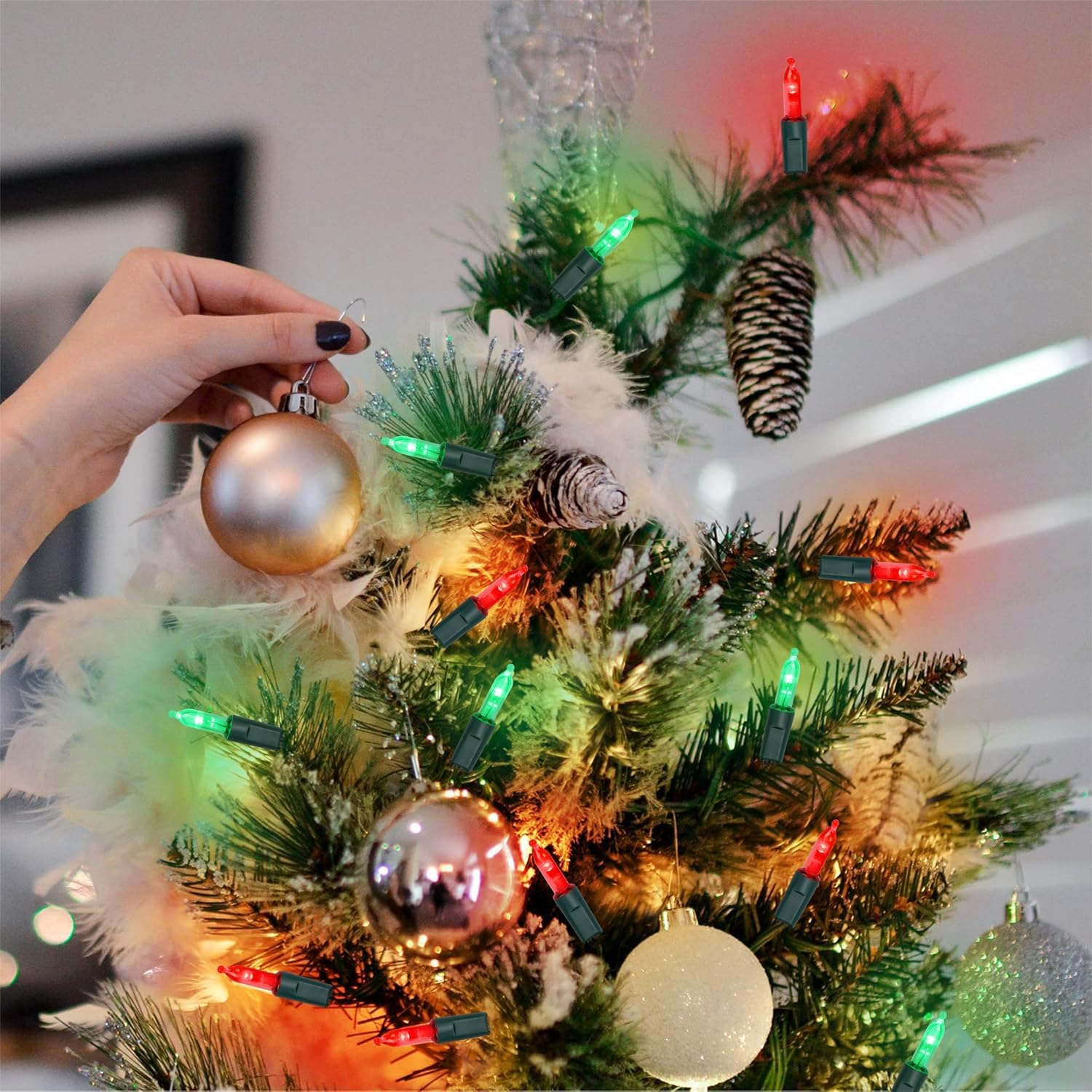 • [8 Lighting Modes]: WATERGLIDE 2 pack 50LED Christmas Red & Green mini string lights have 8 lighting modes for you to choose - Combination, In waves, Sequential, Slow Glow, Chasing/Flash, Slow fade, Twinkle/Flash, Steady on. Adjust the lighting modes by pressing the round button on the battery case