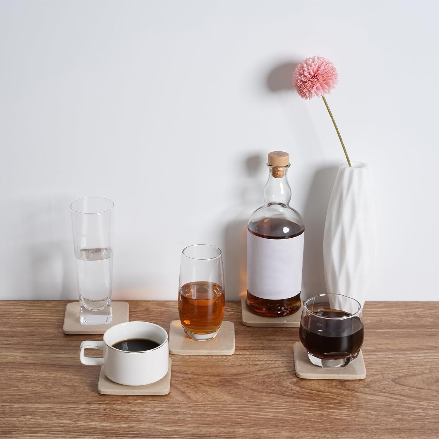• Premium Solid Marble Coasters Set of 5: Handcrafted from natural Crema Beige marble, these square coasters feature unique veining for elegant table decor. Ideal for elevating your coffee table, office desk, or bar setup with timeless luxury
