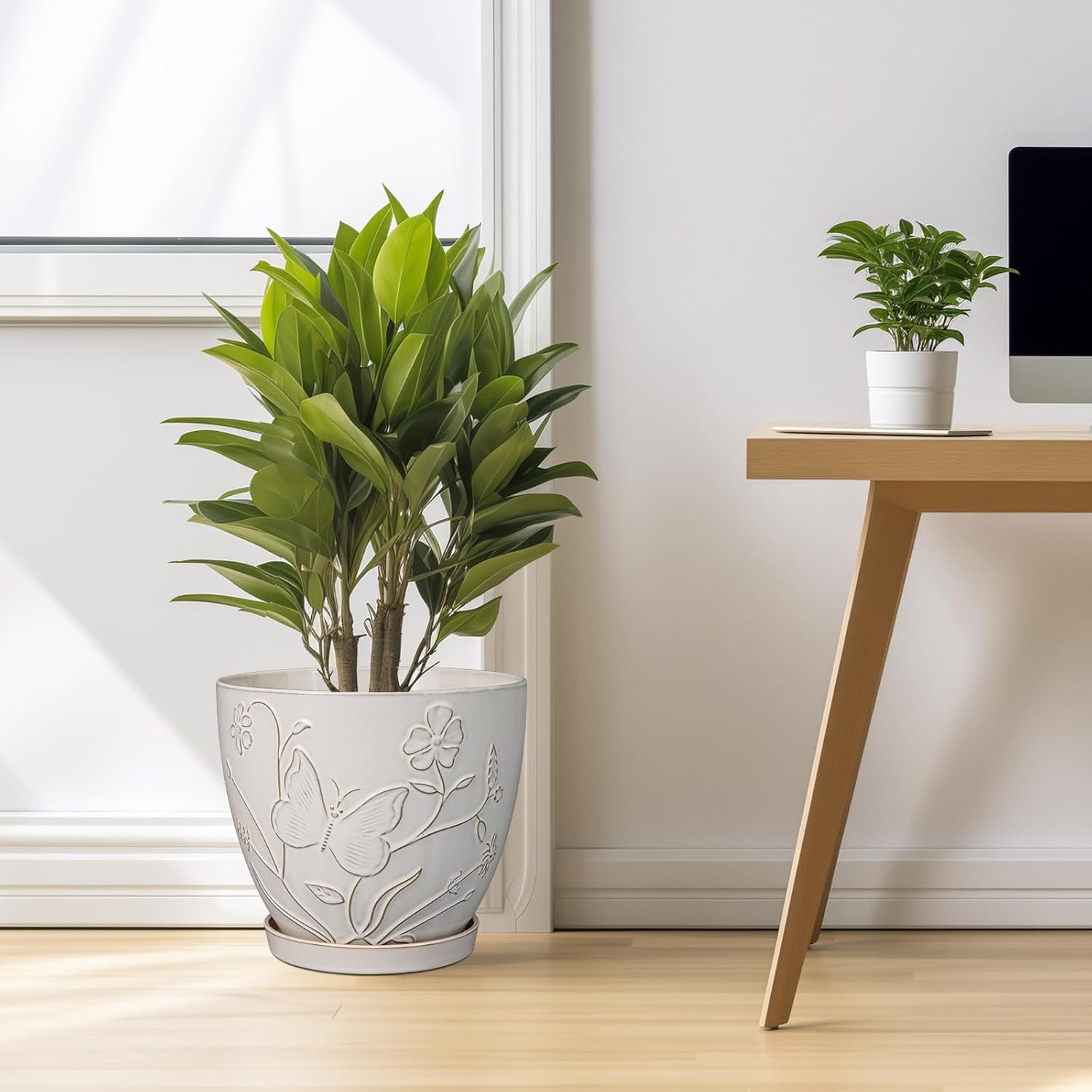 • Stylish Appearance: Our ceramic planter pot has a white main colour, a beautiful embossed butterflies and flowers pattern on the surface, elegant appearance making it ideal for home decor, garden decor and office decor