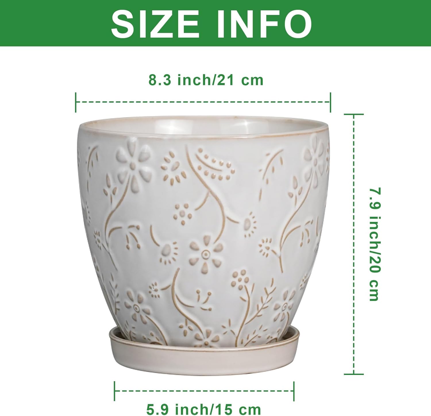 8 Inch Ceramic Pots for Plants Large Planter Pot with Drainage Hole and Saucer Round Flower Pot for Indoor Outdoor Decor, White