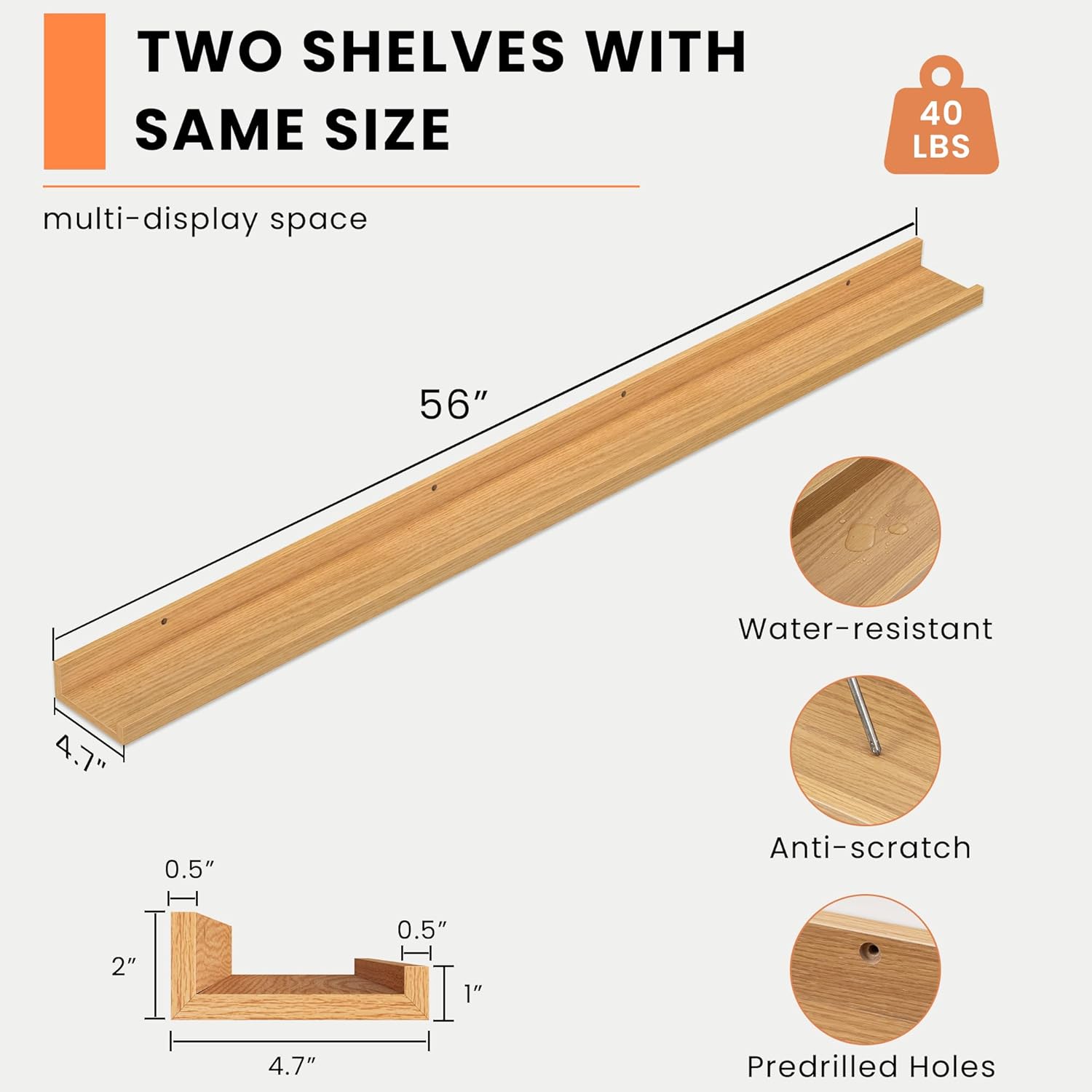 • Picture ledge Shelf for Walls: If you have dozens of pictures but don't know how to display them, Heimlove picture ledge shelves(especially large size) for walls are perfect! With our hanging shelves, store and display different types and sizes of photo frames in one place. The ledge in front of the wall shelves could prevent your precious items from falling off.