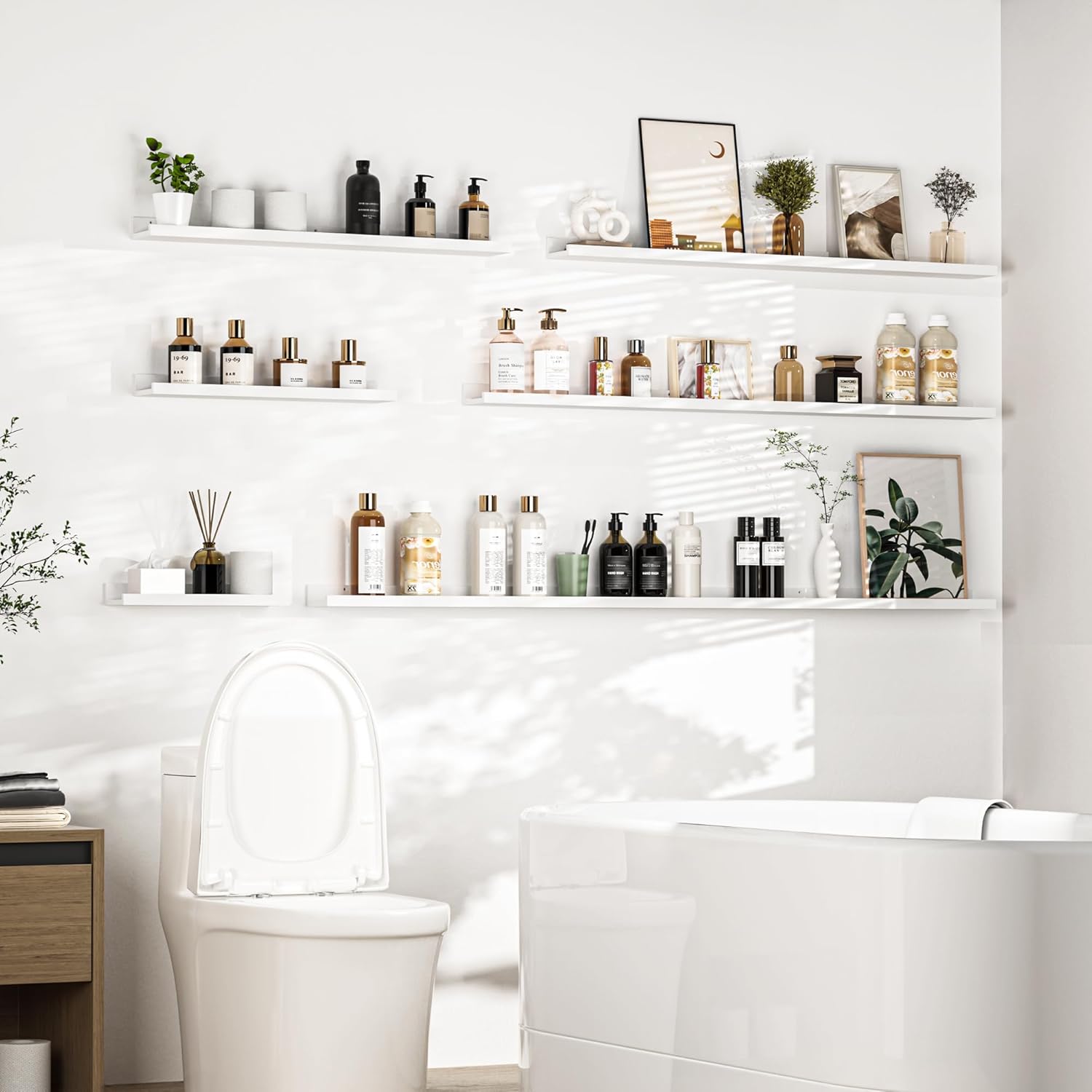 • Multi-Functional: Get creative and find more functions other than the long-picture ledge shelf. Heimlove storage ledge shelves can act as a kids' bookshelf, display shelf for collectible figures, and more. Perfect for decorating the living room, kitchen, bathroom, and nursery room.