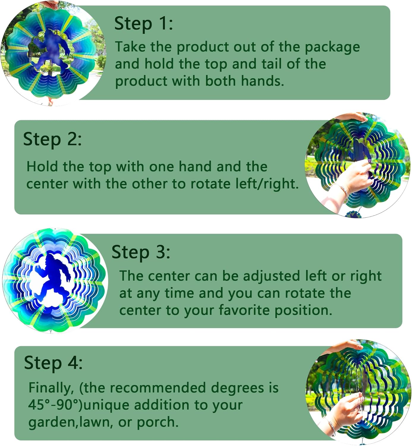 • 【Product introduction】: This 3D wind spinner is made of 12 inches and made of high-quality stainless steel. which adopts cutting technology and PUV printing to achieve a vivid bigfoot shape.