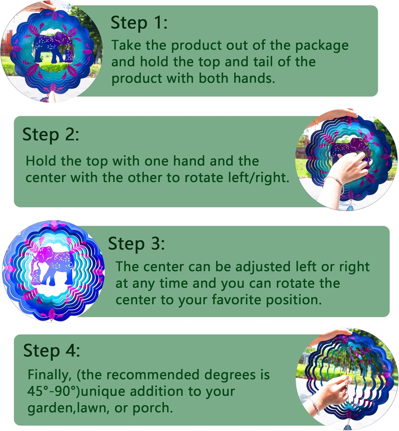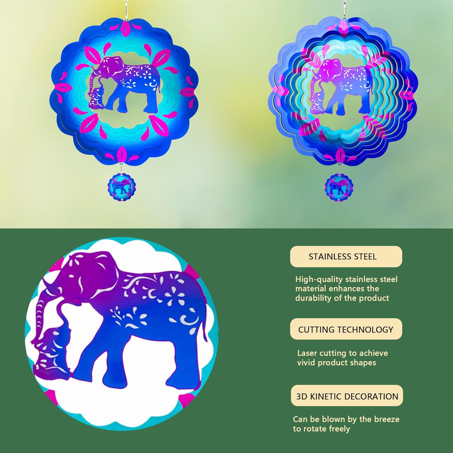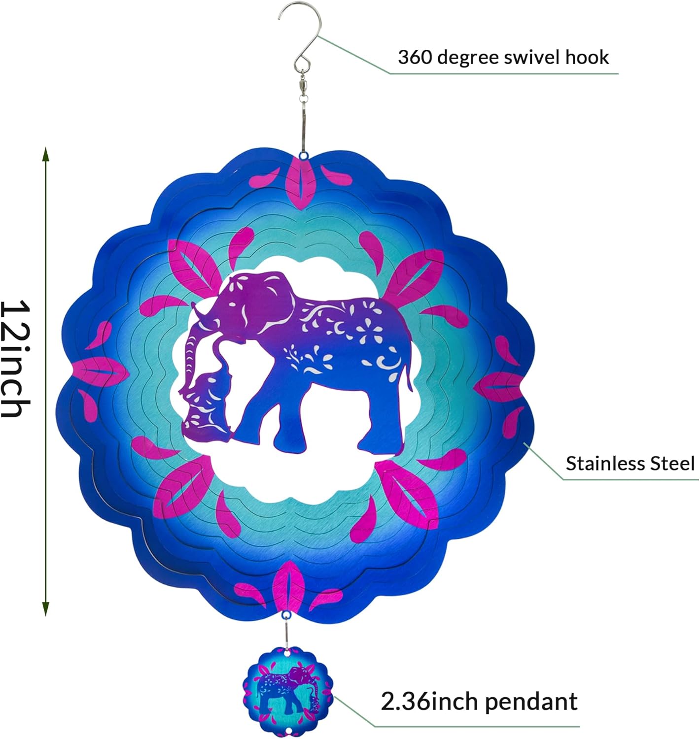 • 【Product introduction】: This 3D wind spinner is made of 12 inches and made of high-quality stainless steel. which adopts cutting technology and PUV printing to achieve a vivid elephant shape.