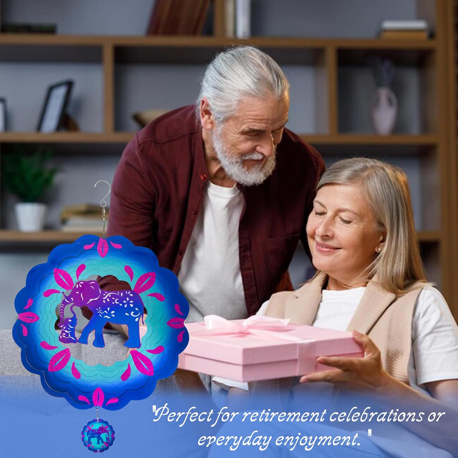 12 inch Elephant 3D Stainless Steel Wind Spinners, Hanging Garden Spinner Kinetic Art Garden Decorations, Reflective Wind Sculpture for Indoor/Outdoor Decor