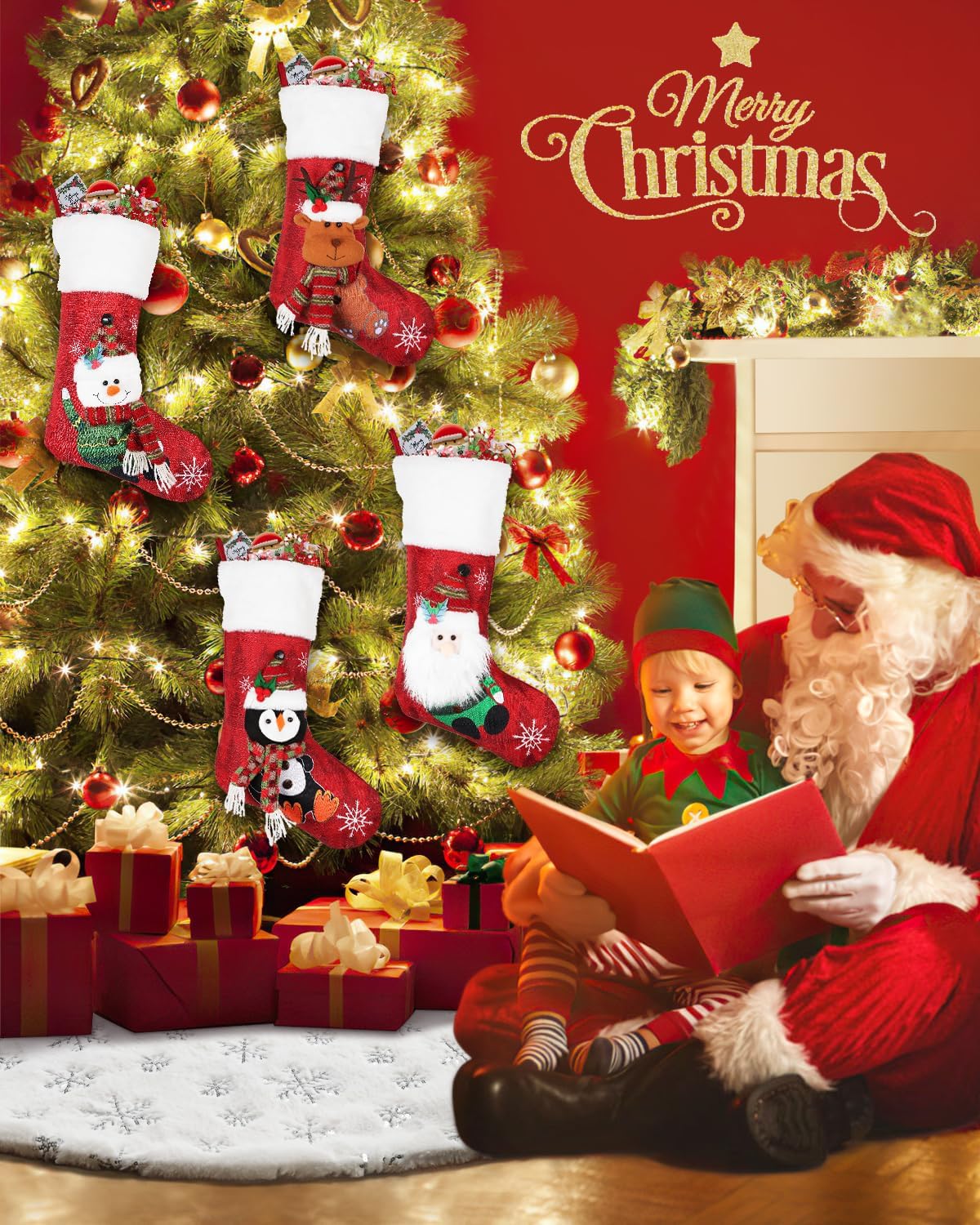• Easy to install: The Christmas tree skirt has three seam magic wands, so they can be installed in a few seconds. You can use it to fix the Christmas tree skirt around the base of an artificial or real Christmas tree