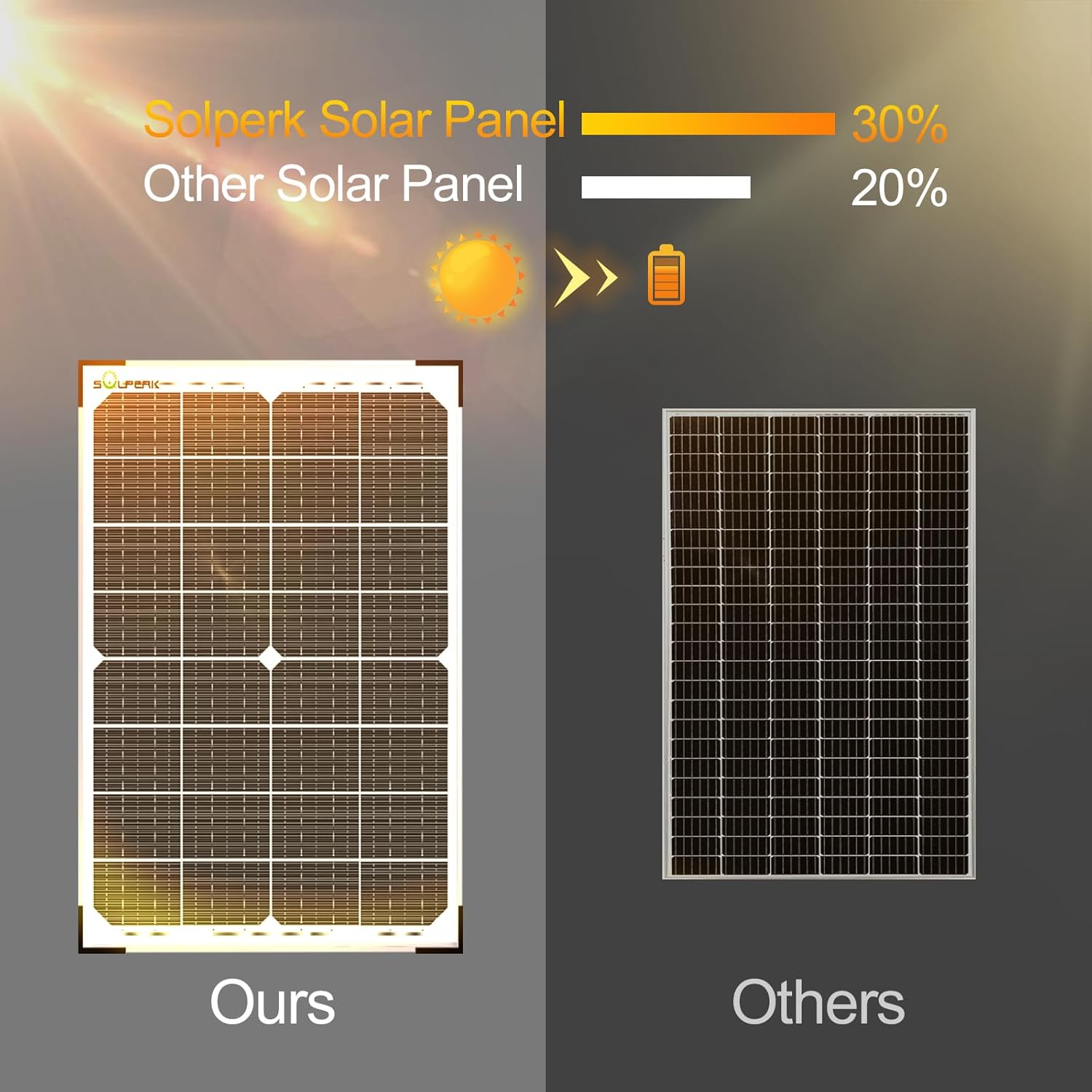 • 【360°Adjustable】The SOLPERK solar charger kit comes with a 360° adjustable bracket, allowing you to easily adjust it for optimal sunlight exposure. It can be easily installed on the ground, wall, or roof to maximize power generation. Additionally, the four corners of the solar panel are edged for added protection during use, ensuring the safety of the product and preventing scratches.