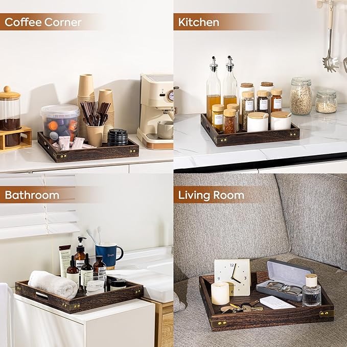 • 【Decorative Tray】The wood tray decorative perfectly combines style and function, which can provides services and decorations for the living room, bedroom, bathroom or entrance, ect. In addition to daily use, the decorative plastic tray is also a reliable helper for birthdays, parties, weddings and other special occasions.