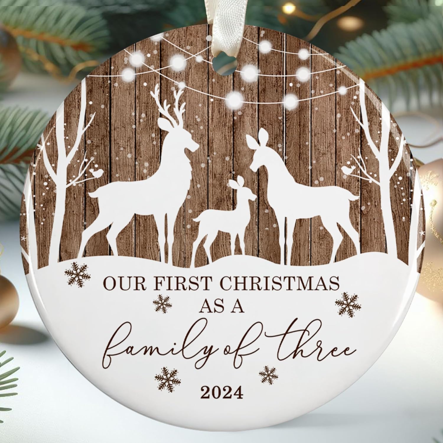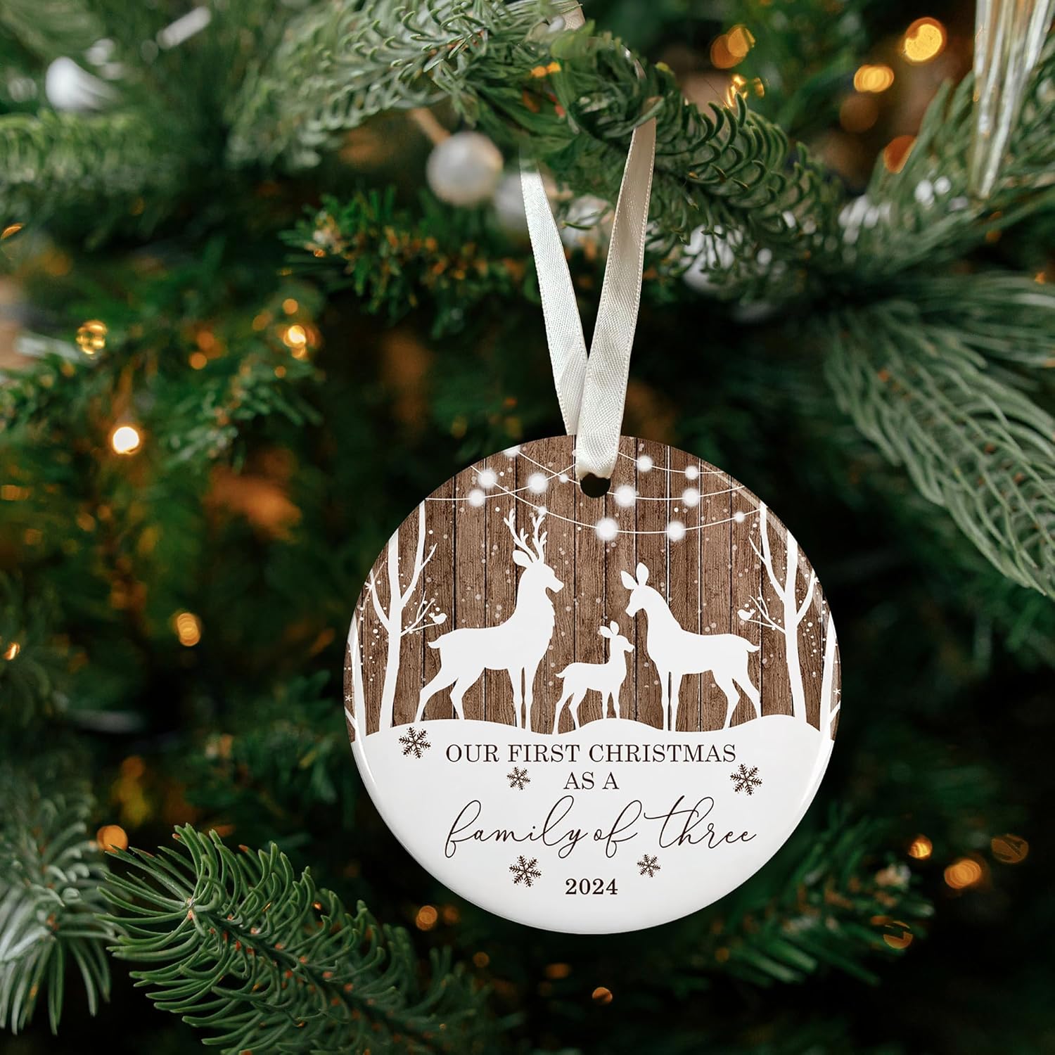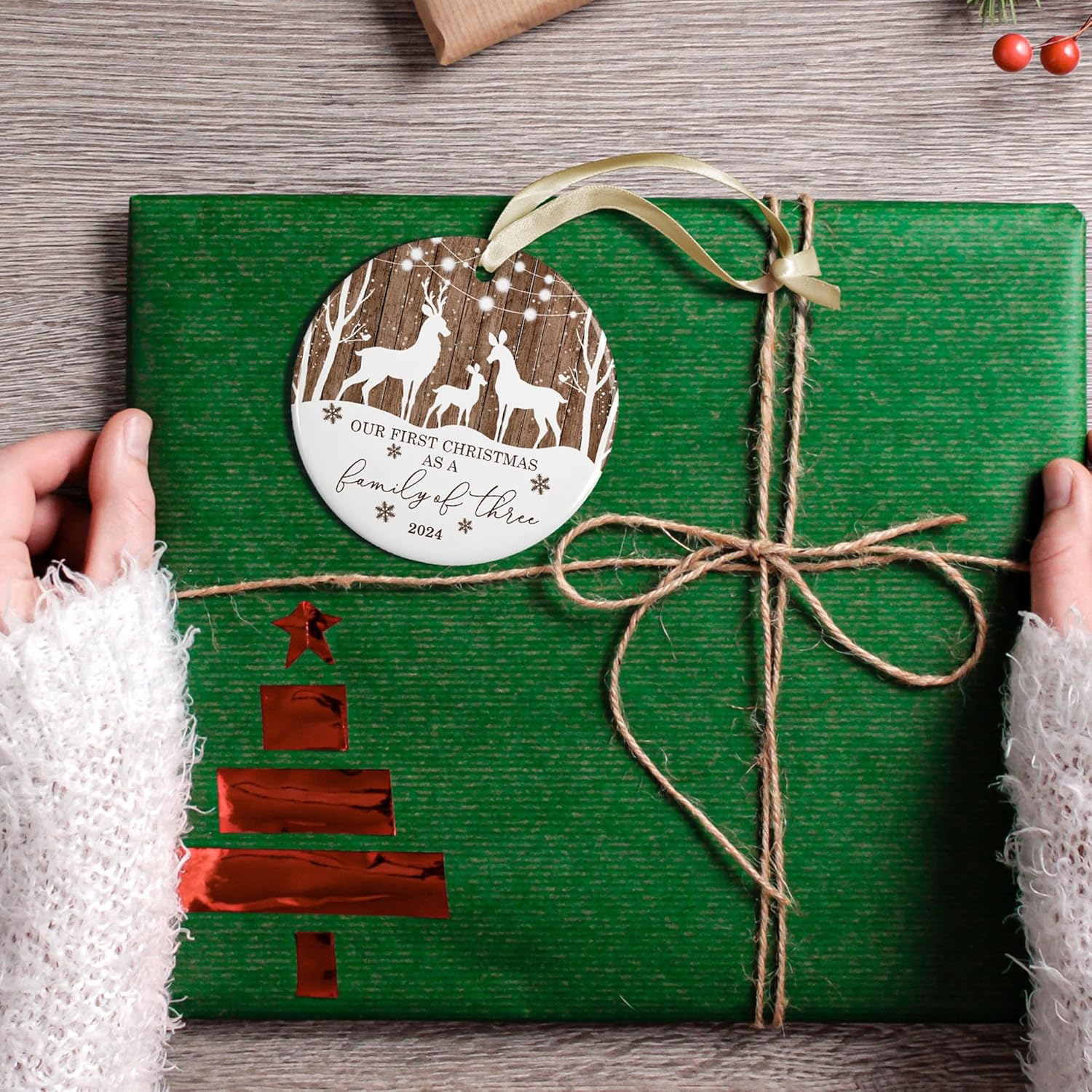 Family Christmas Ornaments 2024 - New Mom and Dad Gifts First Time 2024 - Our First Christmas as a Family of 3 Ornament - Ceramic Ornament