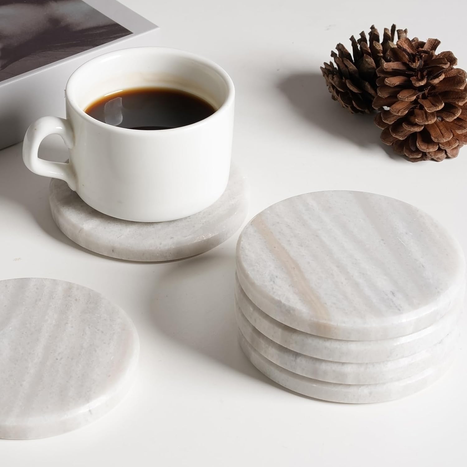 • Real Solid Marble Cup Coaster ---- These handmade marble coasters are crafted from natural solid marble, which endows our coasters with unique texture and appearance that can elevate your desktop beauty, add a sense of high quality and luxury to your home environment