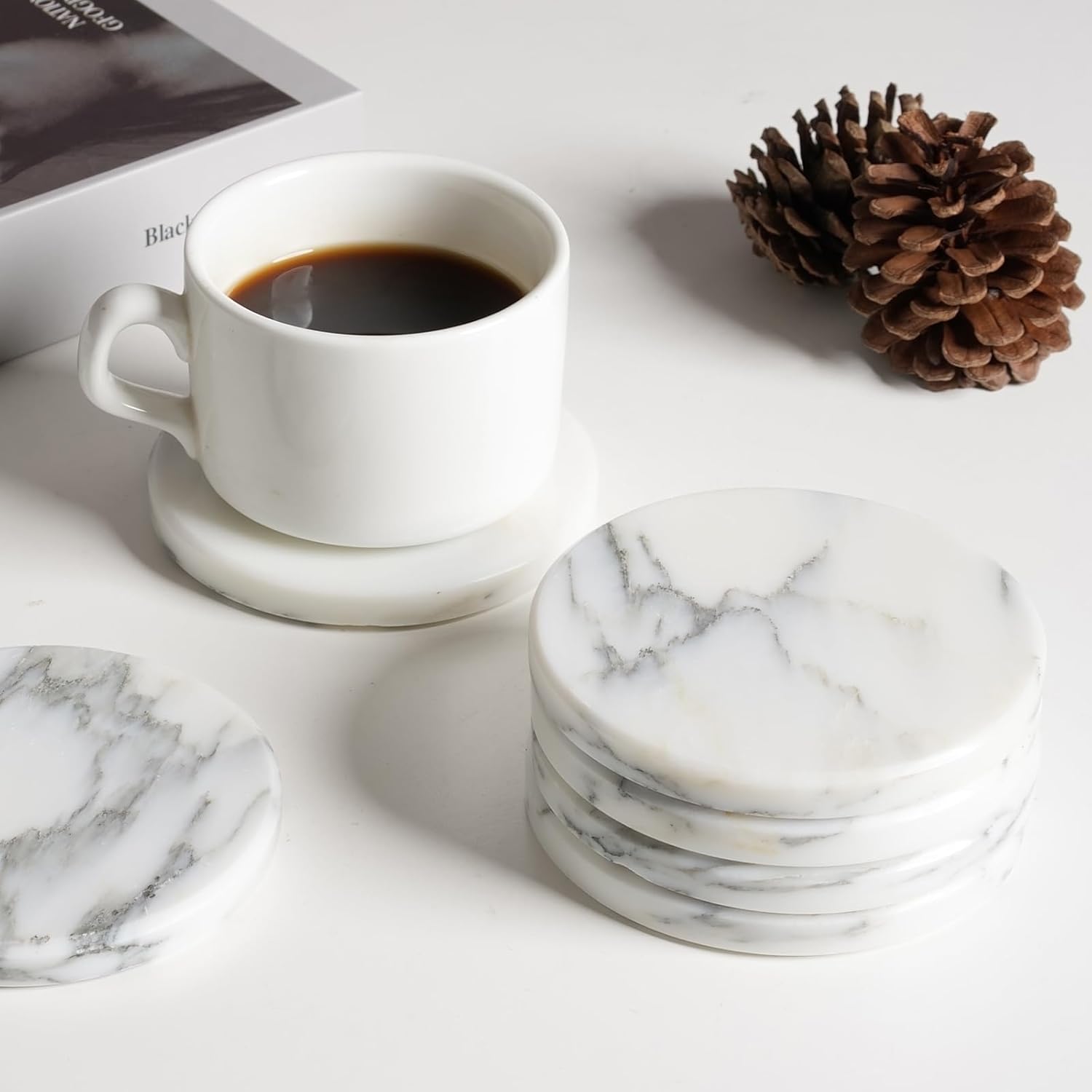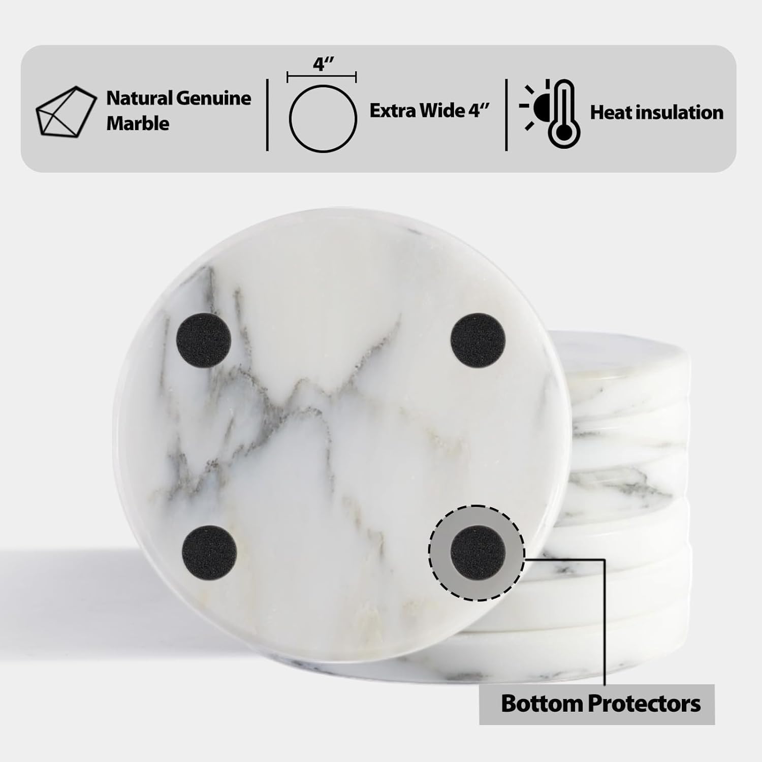 • Extra Wide ---- Set contains 6 pieces of marble coasters with size 4 x 4 x 0.35 inch, the perfect size will comfortably hold any wine glass, cup, or coffee mug, providing ample space to catch drips and condensation, making it versatile for normal drinkware