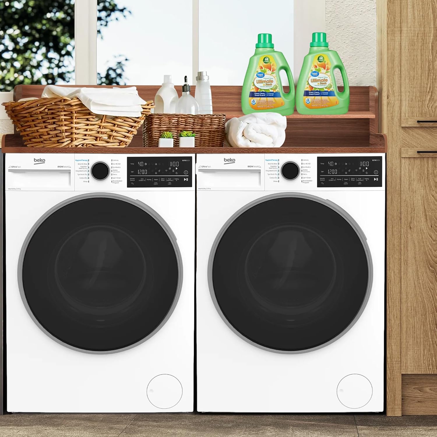 • 【Spacious and Functional】Equipped with an additional shelf(advantage compare to others), our countertop maximizes space utilization, offering ample space for all your laundry needs. Whether you're folding clothes, sorting laundry, or organizing essentials, it has got you covered. Provides a hassle-free washing and drying experience. Please refer to Pic 3 for exact measurements.