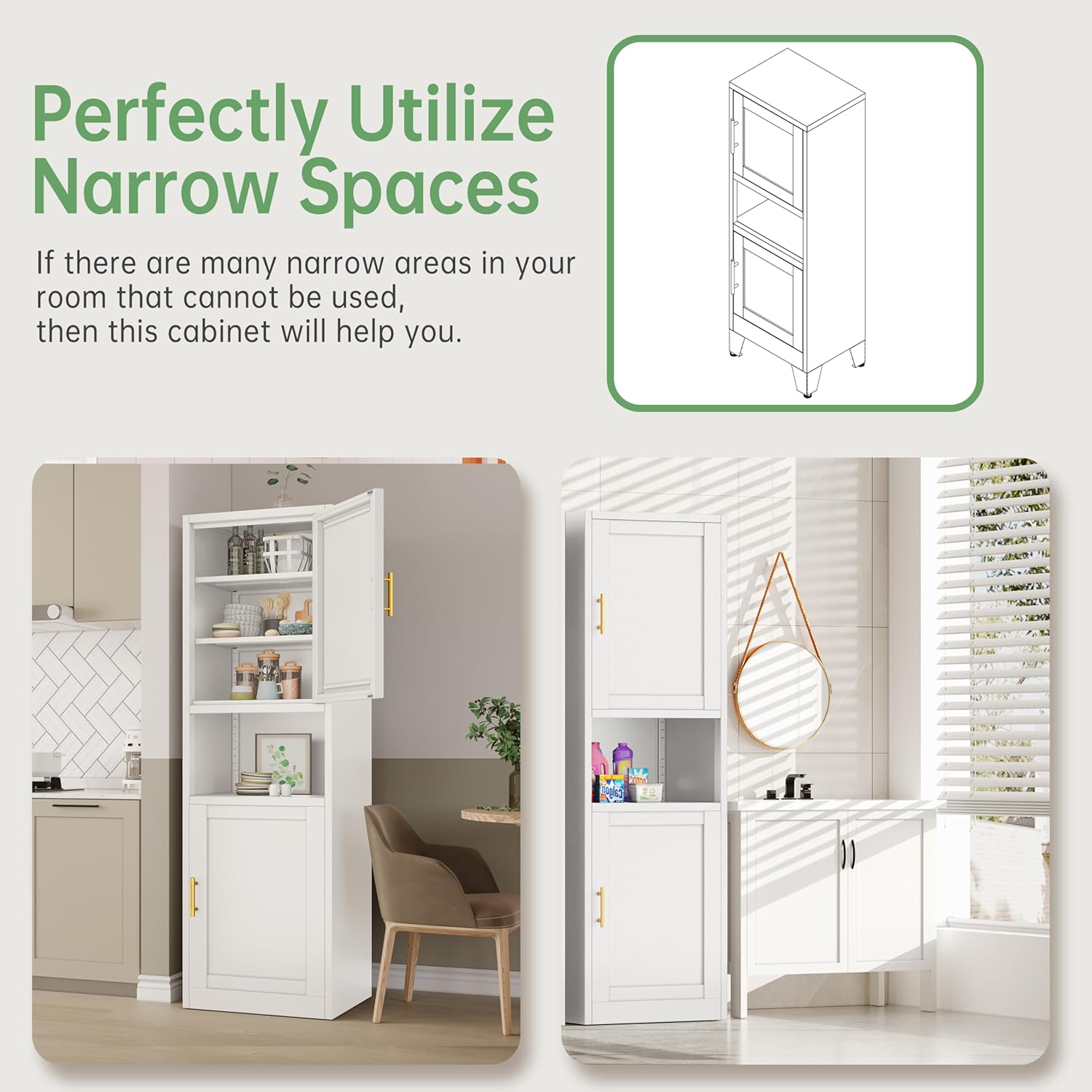 Tall Narrow Storage Cabinet 66.93" H Tall Bathroom Cabinet Metal Pantry Cabinets, 4 Adjustable Shelves for Kitchen, Home Office, Living Room, Dinning Room (20 inches Wide White)