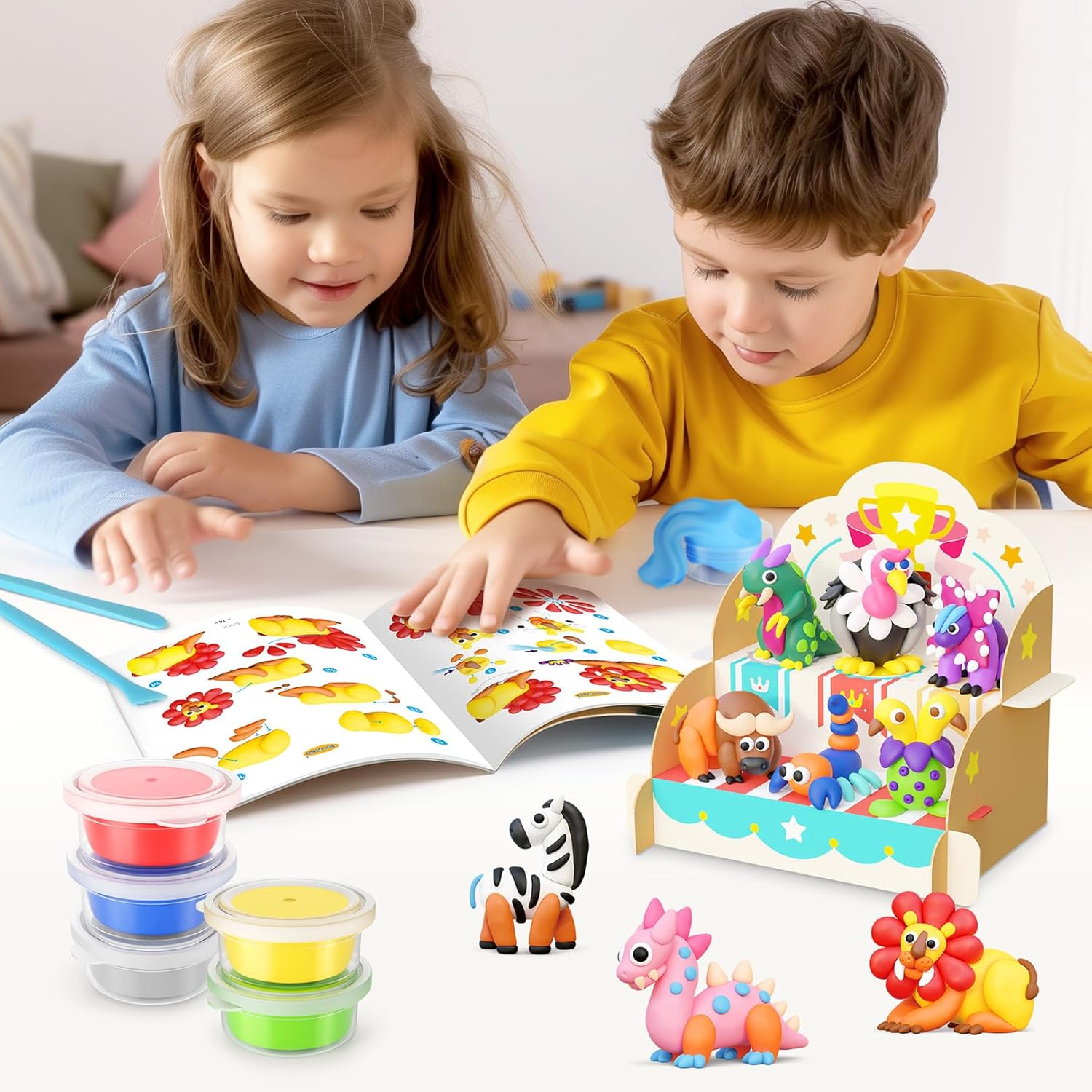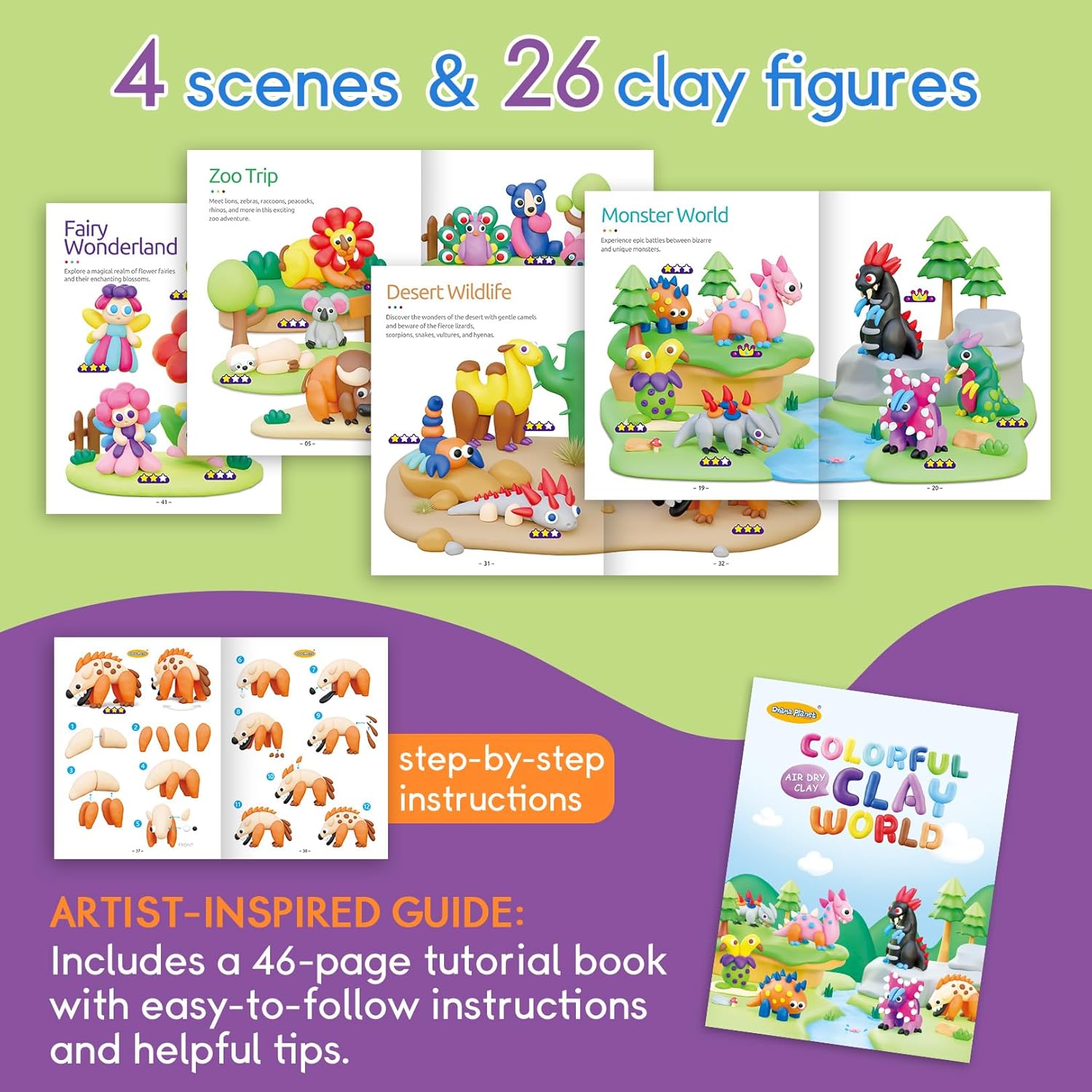 • Expertly Designed Guide: Explore 4 themes with step-by-step tutorials for 26 unique clay figures, all designed by clay artists. These guides cater to various skill levels, offering an enjoyable challenge for every young artist.