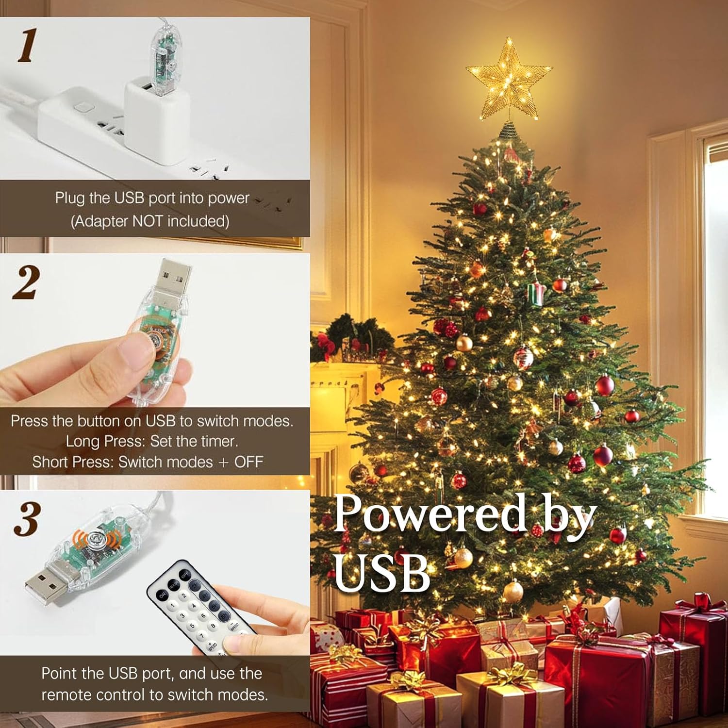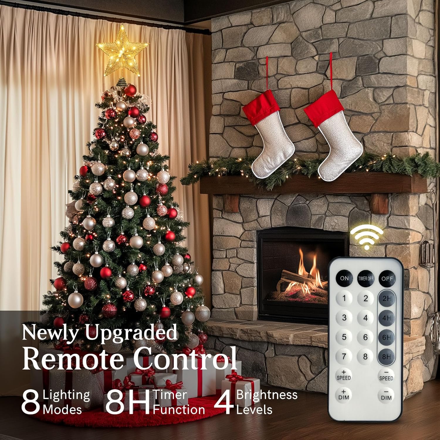 • 🌟 EASILY SETUP: 5m/16.4ft long line, which means it works great either indoor or outdoor.The tree topper easily attaches to the tree, due to the stable spiral base and construction