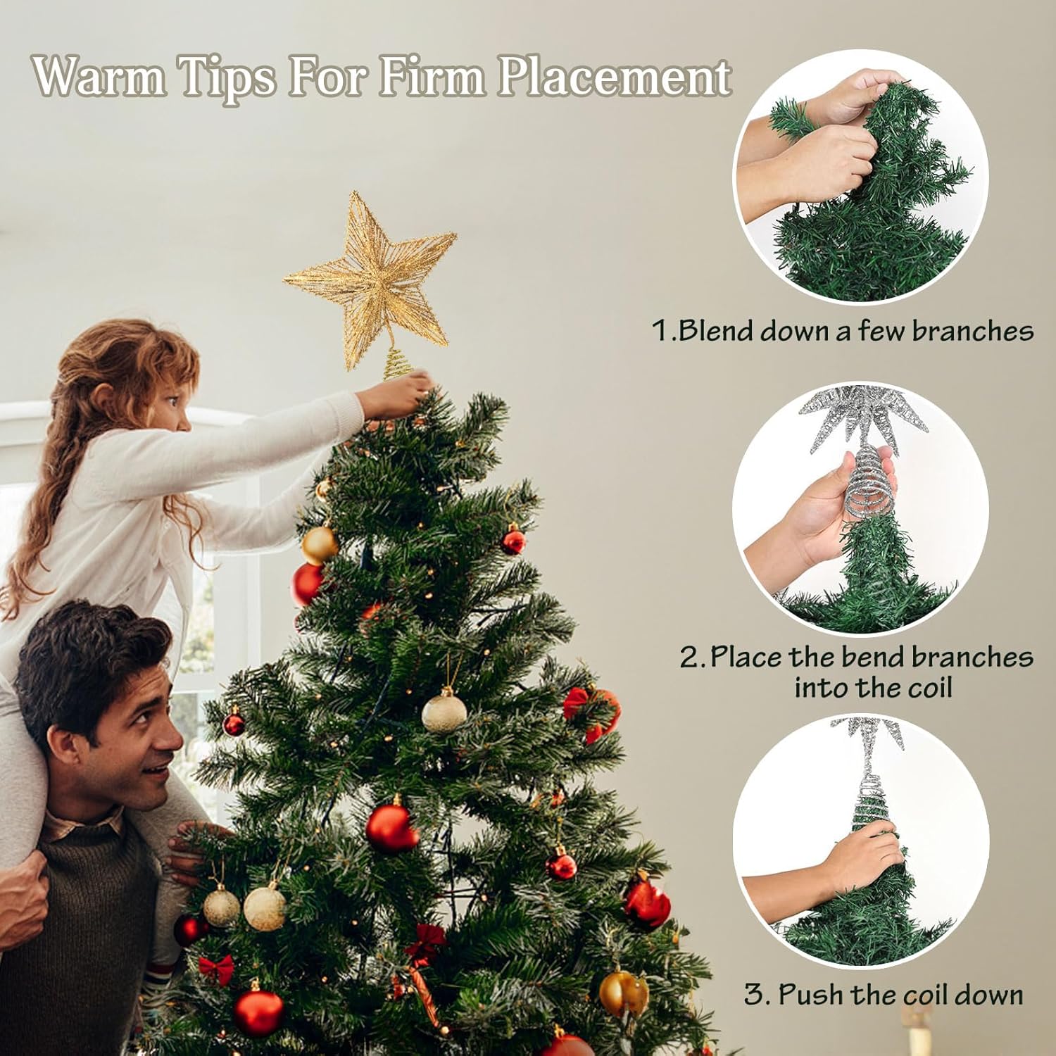• 🎄 BEAUTIFUL CHRISTMAS TREE TOPPER STAR: Designed in the shape of a star, wrapped in a string of warm LED lights that glisten in the charming warm light, this hollow star decoration adds sparkling elegance to your Christmas tree. The surface of our Christmas tree decoration has many shiny sequins and powders that sparkle in the light to add an elegant and fantastical atmosphere to any Christmas decorating theme