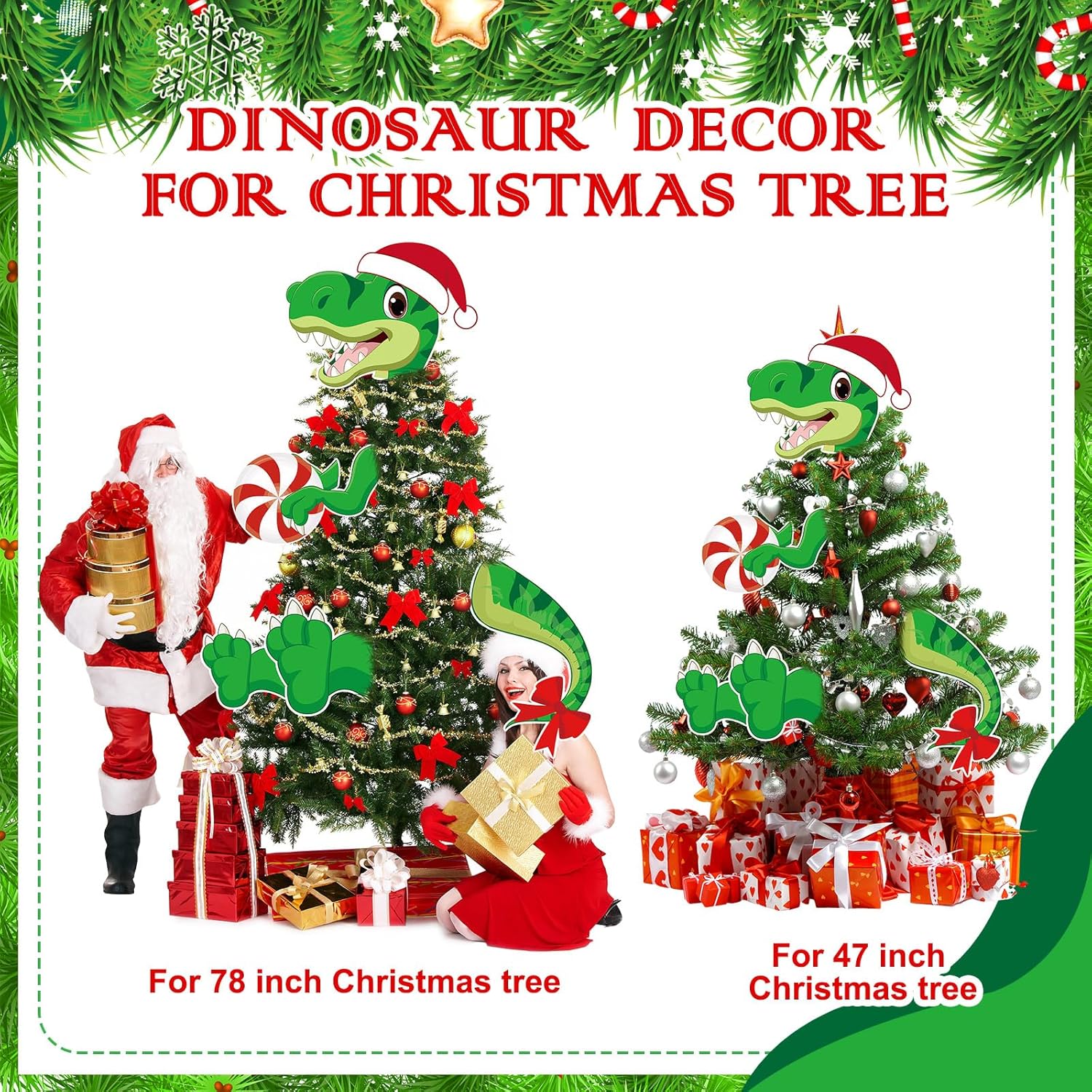 Dinosaur Christmas Tree Topper Decorations Head Arms and Legs Funny Xmas Ornament Decor for DIY Xmas Party Decorations Holidays Indoor Home Gift Party Supplies