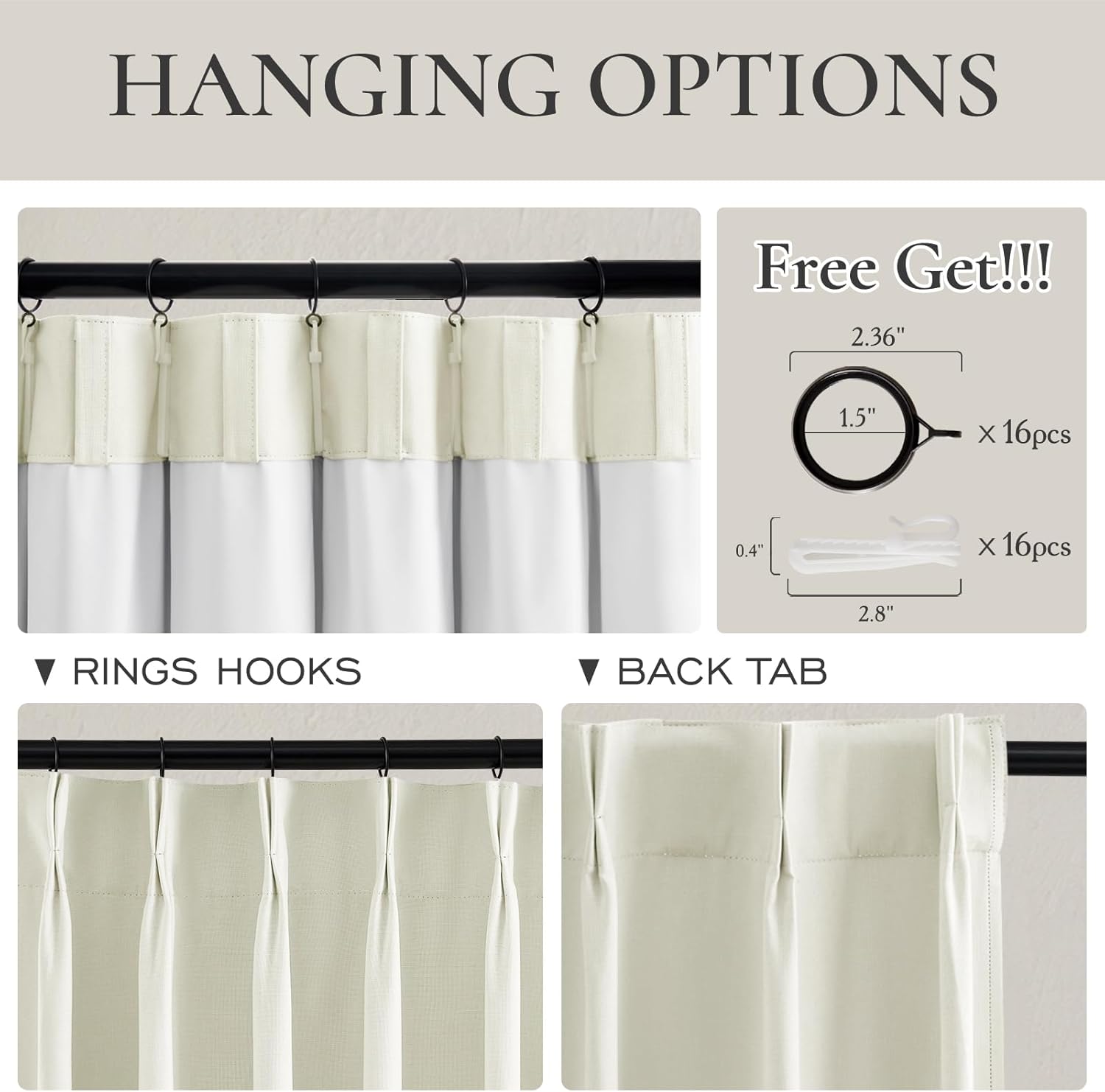 • Ready Made:Set of 2 pinch pleated curtain panels per package with 16 metal rings and 16 adjustable plastic hooks(The adjustable hook can raise and lower the height of the curtain by 1 inch),Each panel measures 40"W x 120"L,pair measures 80"W x 120"L