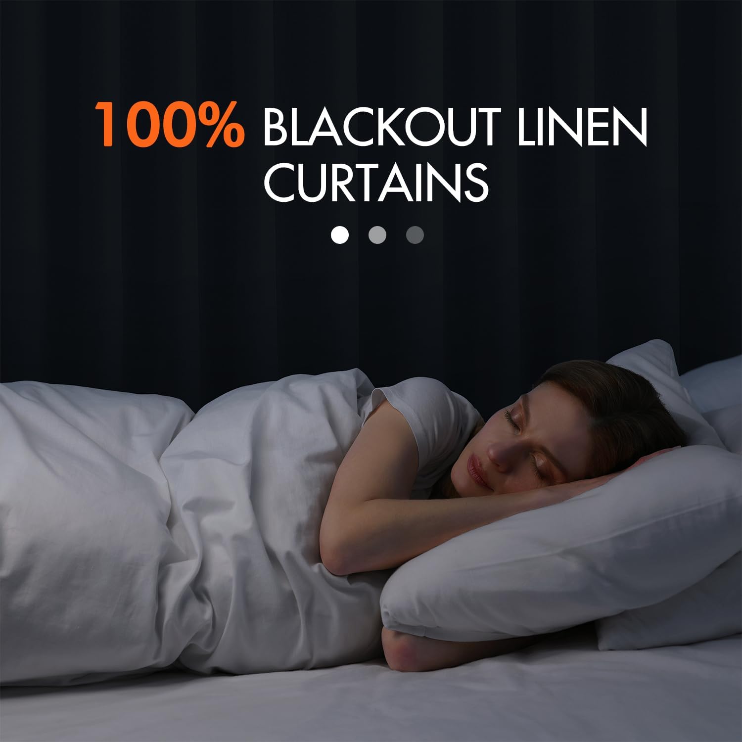 • INNOVATED MATERIAL: Crafted from premium thick linen-like fabric with a substantial weight of 350 GSM, these curtains surpass standard blackout options in thickness, luxurious texture, and functionality. The advanced four-layer coating ensures 100% light blocking, insulation against heat and cold, and effective noise reduction. The vintage burlap texture adds timeless charm and highlights their high-quality feel. Energy-efficient and durable, they provide privacy and a cozy atmosphere year-round