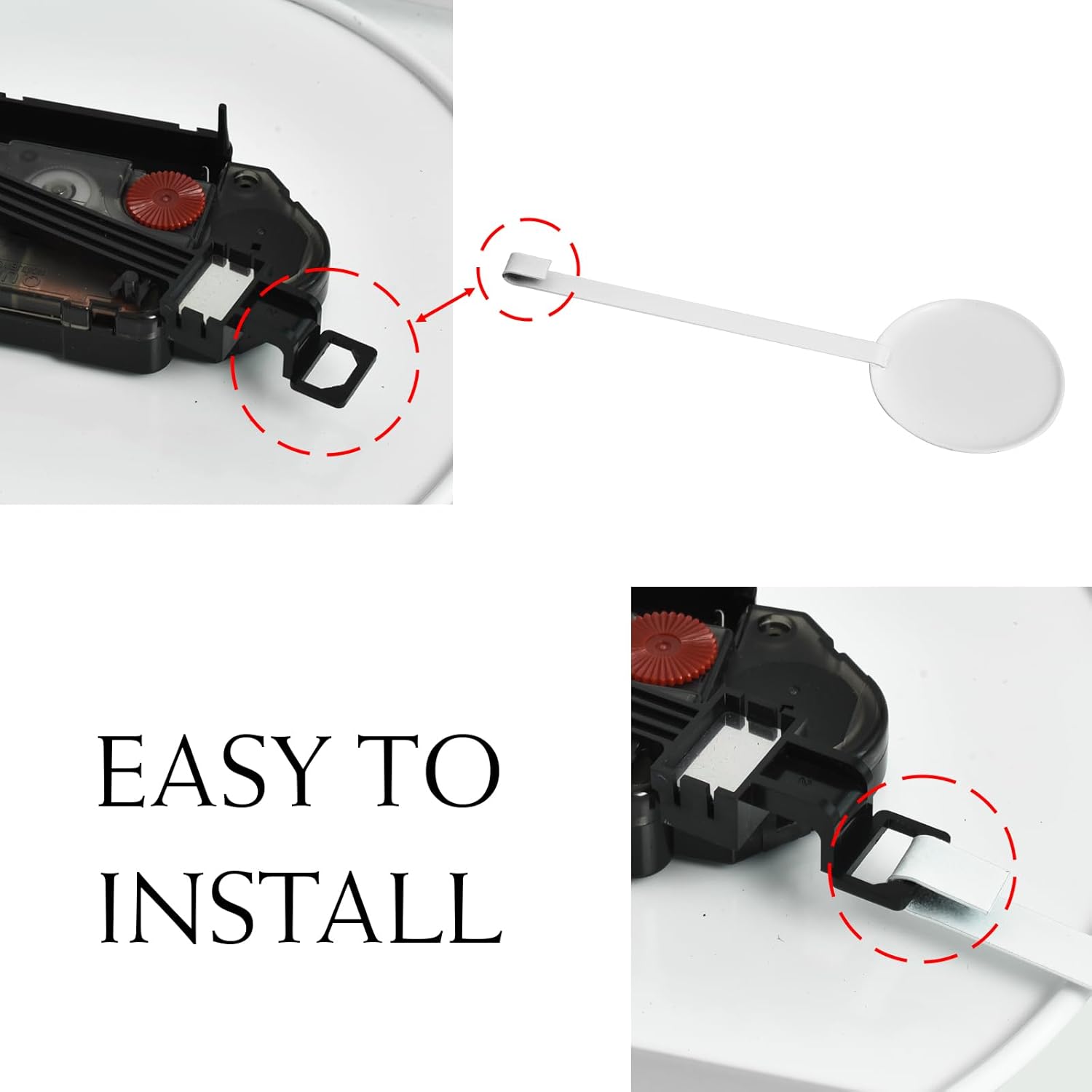 • EASY INSTALLATION – Simply insert two AA batteries in the back of the clock (not included), and adjust the setting knob to your preferred time. Attach either the black or the gold pendulum, and enjoy the silent swing and gliding hands across the hours. It's as simple as that!