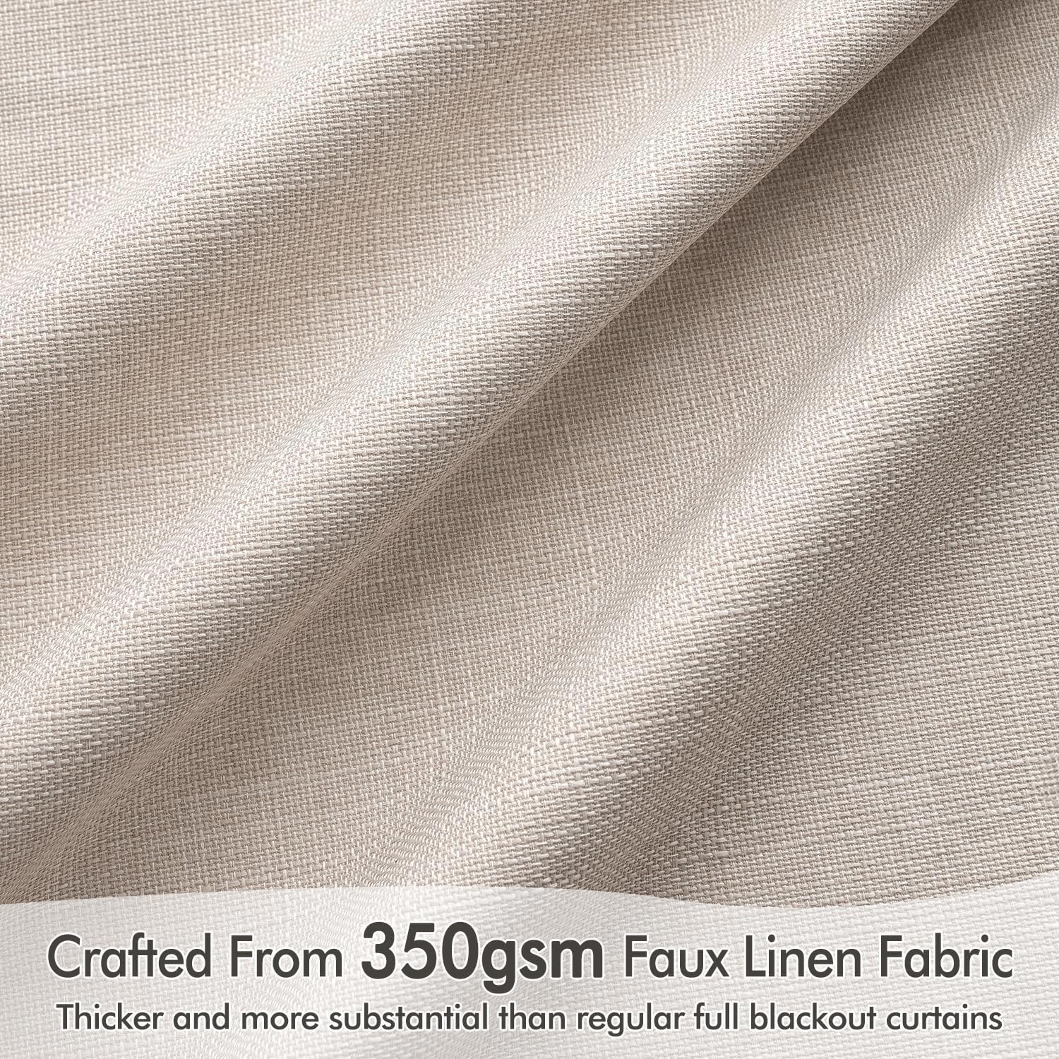 • INNOVATED MATERIAL: Crafted from premium thick linen-like fabric with a substantial weight of 350 GSM, these curtains surpass standard blackout options in thickness, luxurious texture, and functionality. The advanced four-layer coating ensures 100% light blocking, insulation against heat and cold, and effective noise reduction. The vintage burlap texture adds timeless charm and highlights their high-quality feel. Energy-efficient and durable, they provide privacy and a cozy atmosphere year-round