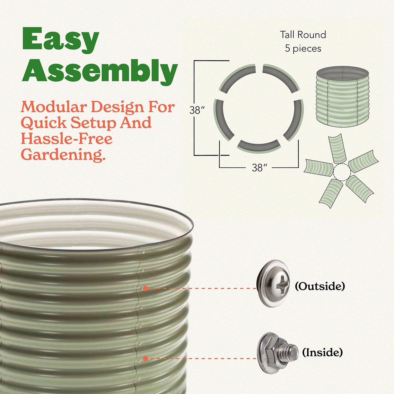 Epic Gardening 5-in-1 Modular Galvanized Raised Garden Bed Kit, 30" Short Metal Planter Box, Durable Aluzinc Steel Raised Garden Bed Outdoor for Vegetables, Herbs, Flowers & Fruits - Round Mist Green