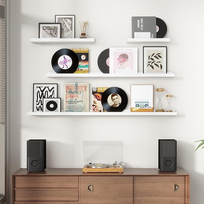 • Picture Ledge Shelves: The ledge in front of the wall shelves could prevent your precious items from falling off. And we handcraft a shallow groove on each book shelf to protect your items from sliding forward. Each floating shelf is 5 inches in depth with a 1.25 inches lip, you can put photos, pictures, DVD players, videos, books, toys, and some other knickknack on this beautiful display wooden shelf