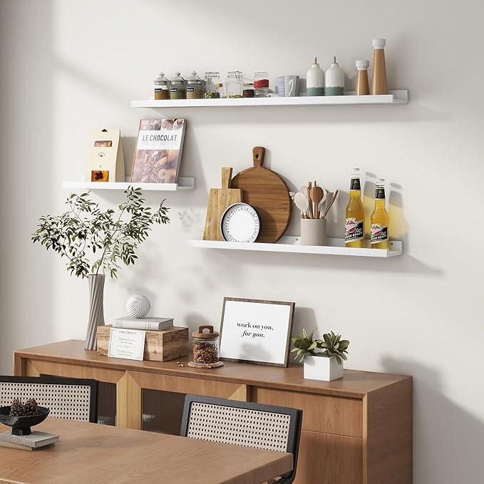 Picture Ledge Shelf for Wall, 48 inches Solid Pine Wood Nursery Book Shelves 3 Pack, Floating Ledge Shelves for Kids' Room, Bedroom, Bathroom Long Floating Shelves for Wall, White