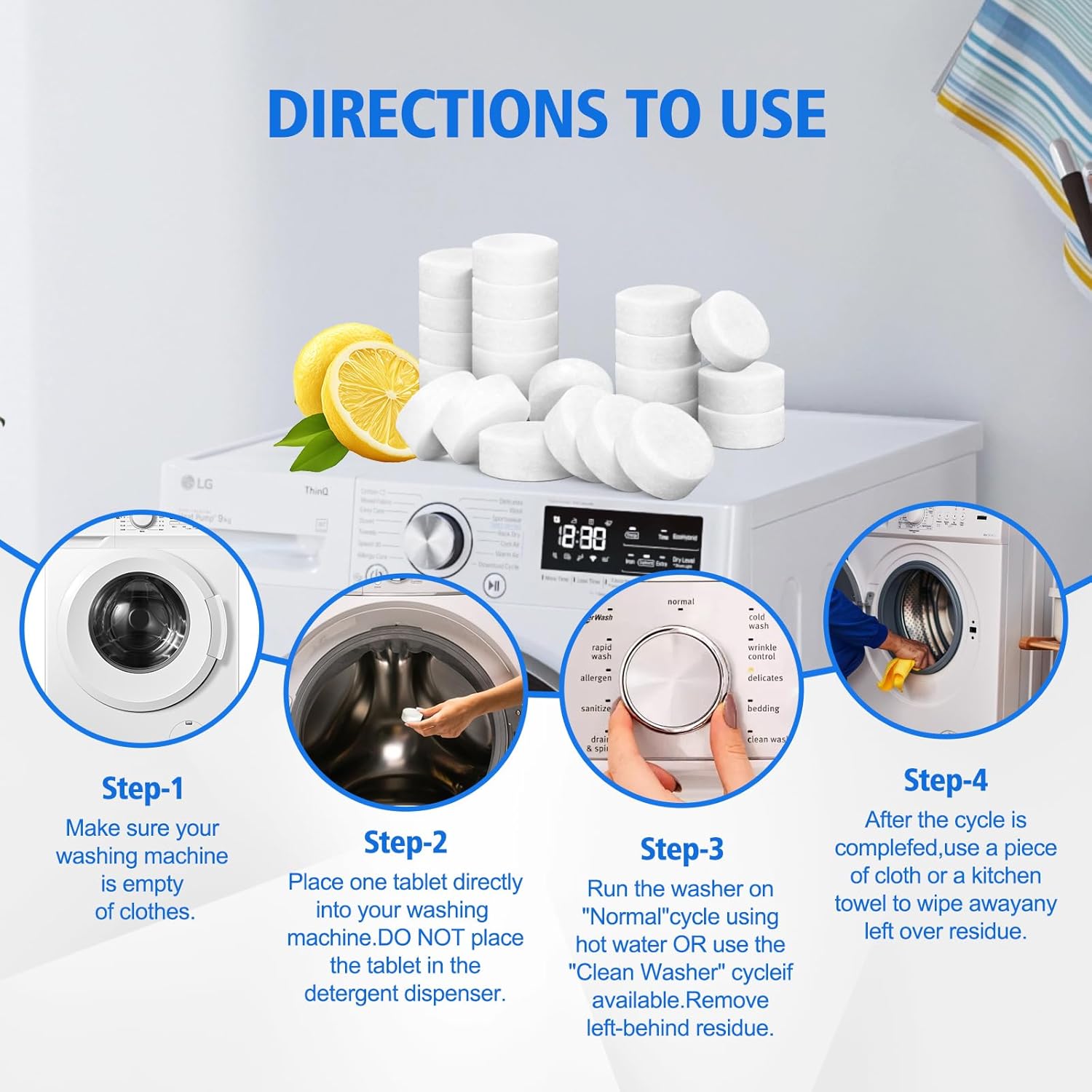 • Powerful&Fast Cleaning:Washer machine cleaner tablets front loader and top load formula delivers a deep clean, effectively removing stubborn dirt, residue, and grime build-up.Our washer machine cleaner tablets breakdown easily into deep scrubbing powder when exposed to water. The tablets clean your washing machine Quickly