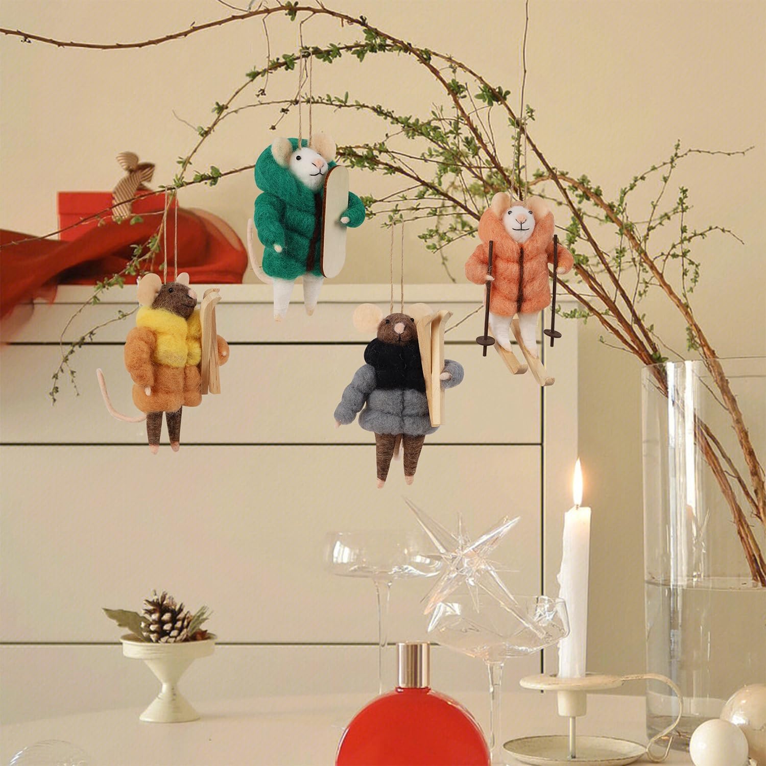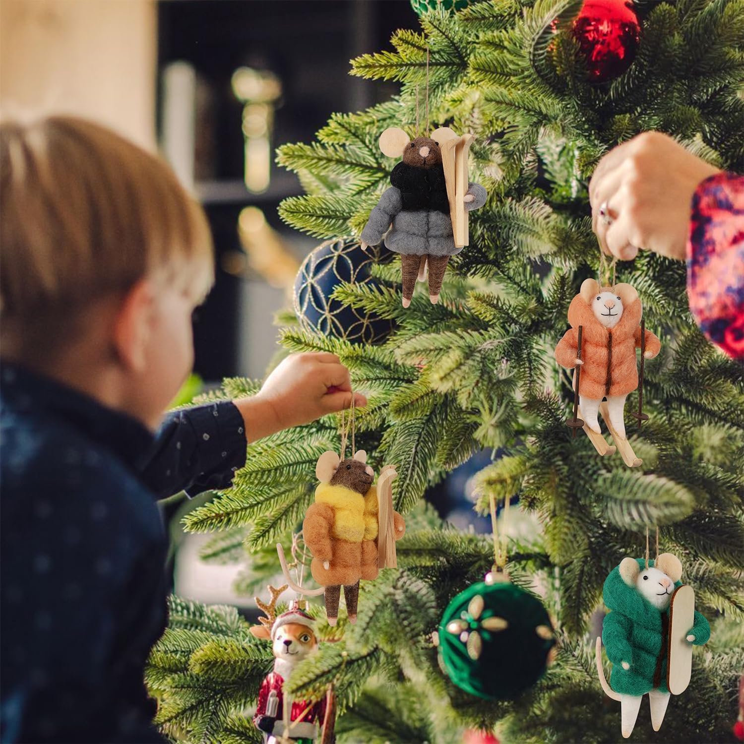 • CHRISTMAS FELT SKIING MOUSE: This set includes four charming felt Skiing Mice ornaments, each showcasing different color expressions, perfectly capturing the whimsical spirit of the holidays and adding a touch of cuteness to your Xmas decor. The size approx. 3" X 3.5" X 4.7". Notes- It is for decoration, not a toy for children