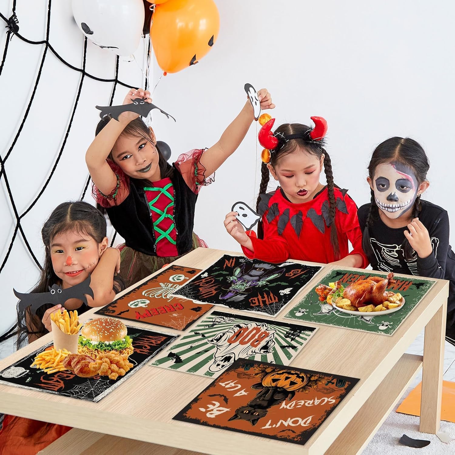• Widely Applied:These Halloween vintage table placemats plastic are perfect for a wide range of occasions, including birthday parties, family gatherings, picnics, barbecues, both indoor and outdoor events. They can also double as photo props, adding a touch of cheerful to your party atmosphere.