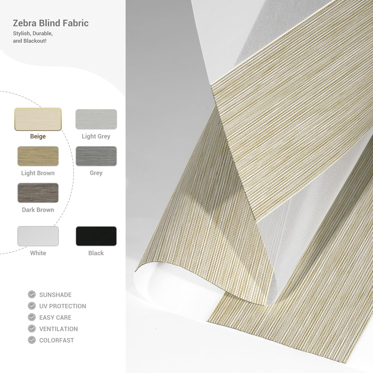 • 【EXCELLENT MATERIAL】100% high quality imported polyester fibre, waterproof, breathable, anti-static, dustproof, durable. Double-layer breathable design, alternating between light-permeable fabrics and solid colour fabrics, beautiful and fashionable, meet your needs for privacy protection and light filtering level. Good UV protection, durable and suitable for all seasons.