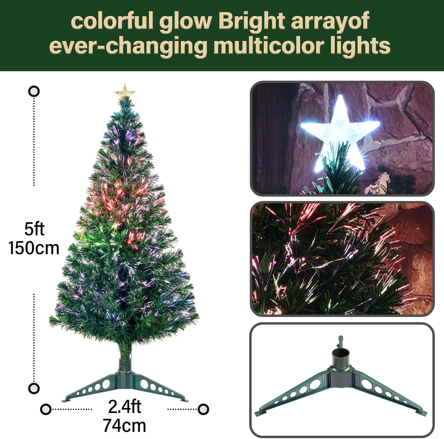 • ★Pre-lit fiber optic and Lighted Top Star: this Optical Fiber Xmas Tree has multi-colored fiber optic and one top star with automatic continuous lighting and flashing modes, emitting a captivating glow while bringing a festive atmosphere to your home.