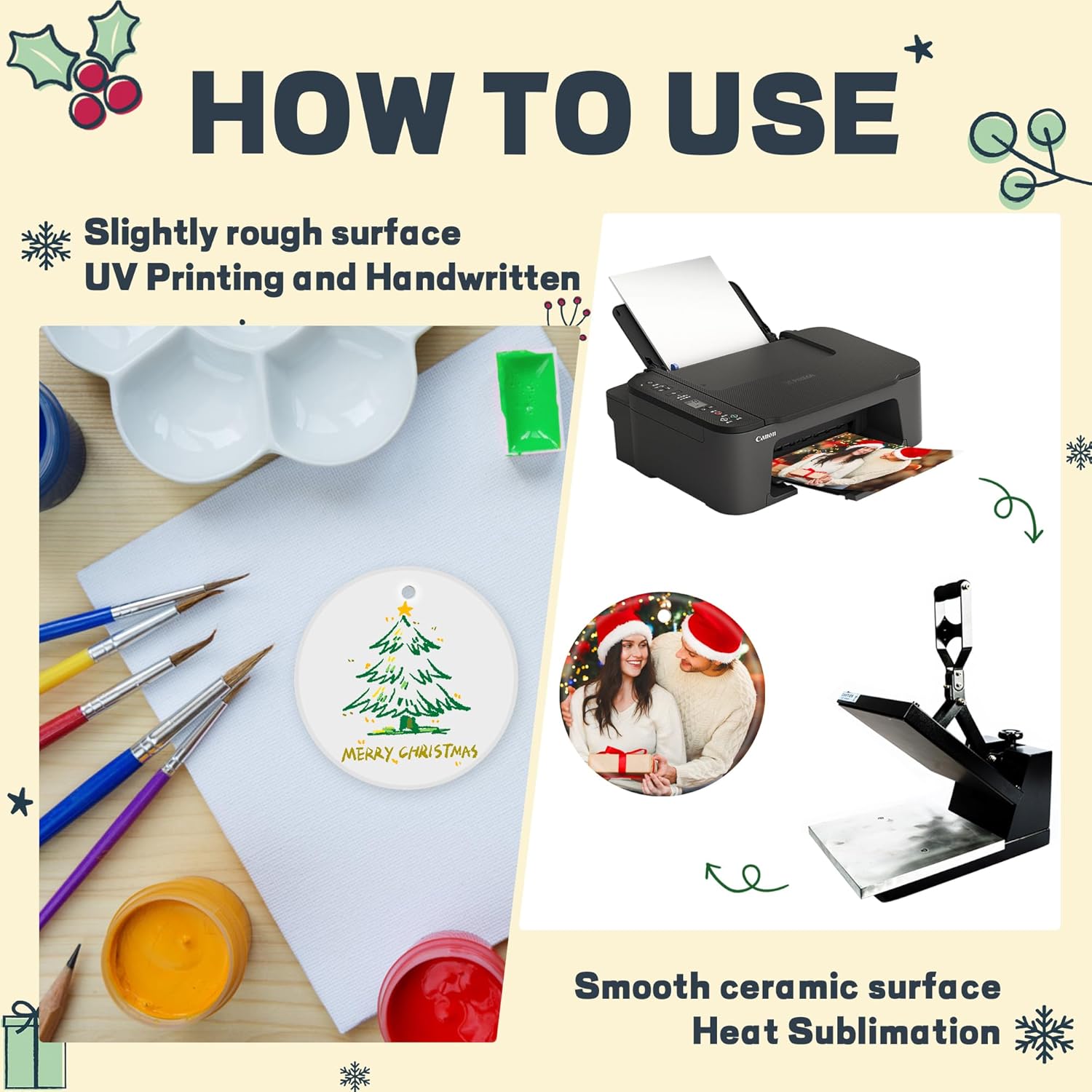 • Festive Indoor Decor: Add cheer to 2025 with these sublimation ceramic ornament blanks. Specially designed fun pendants will help you celebrate the festive season and say goodbye to 2025 in a unique way. Bring festive joy and memories to your home with these unique decorations