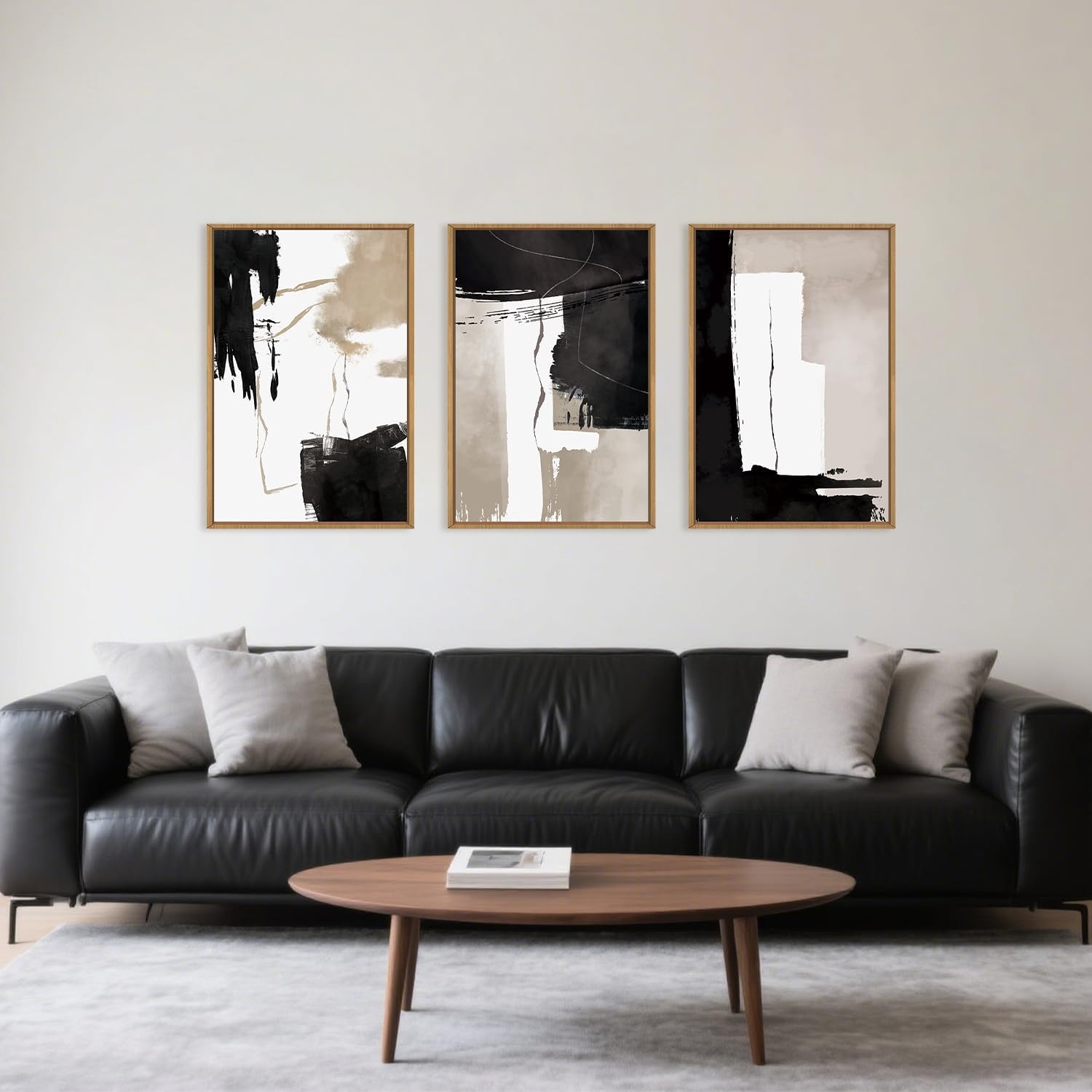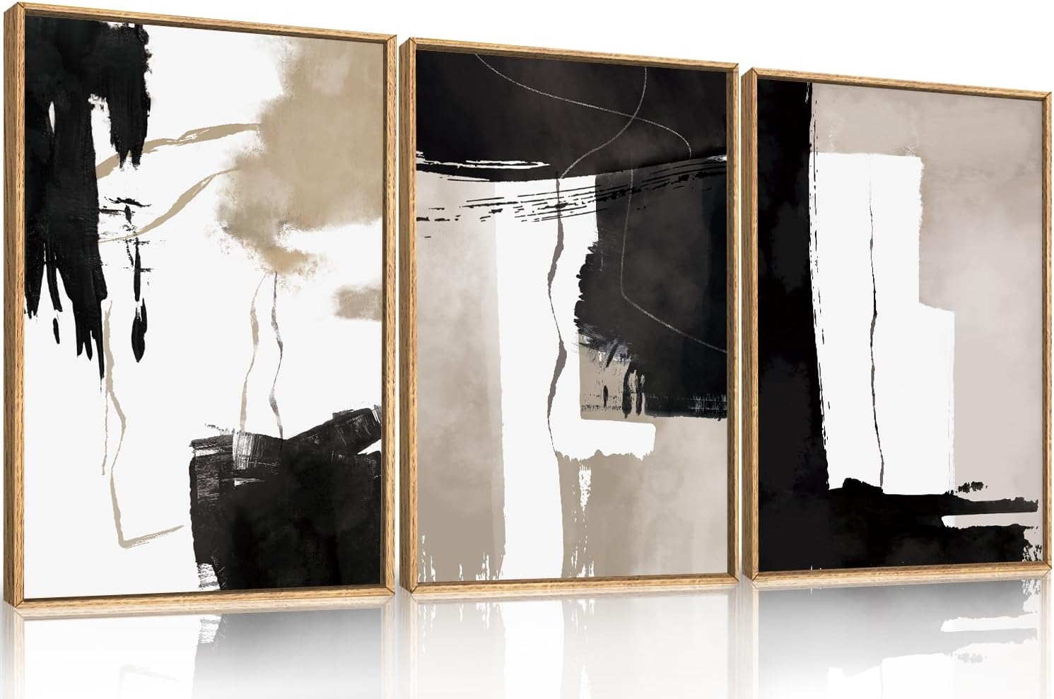 • 【Abstract Wall Art】This modern abstract framed canvas wall art set is a favored selection among those looking to boost the visual attractiveness of their interior spaces. The artwork predominantly features black, white, and brown, which together form a well-proportioned and cohesive visual pattern. No matter if you decide to mount this piece in your living area, sleeping quarters, or professional space, its non-representational design and neutral hues can add to a soothing and aesthetically satisfying ambiance.
